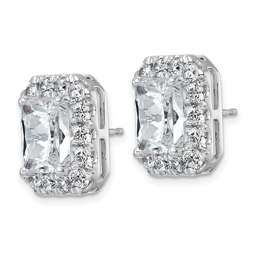 14k White Gold 8 5/8 carat Lab Grown Diamond VS+ F+ Complete Emerald Halo Post Earrings