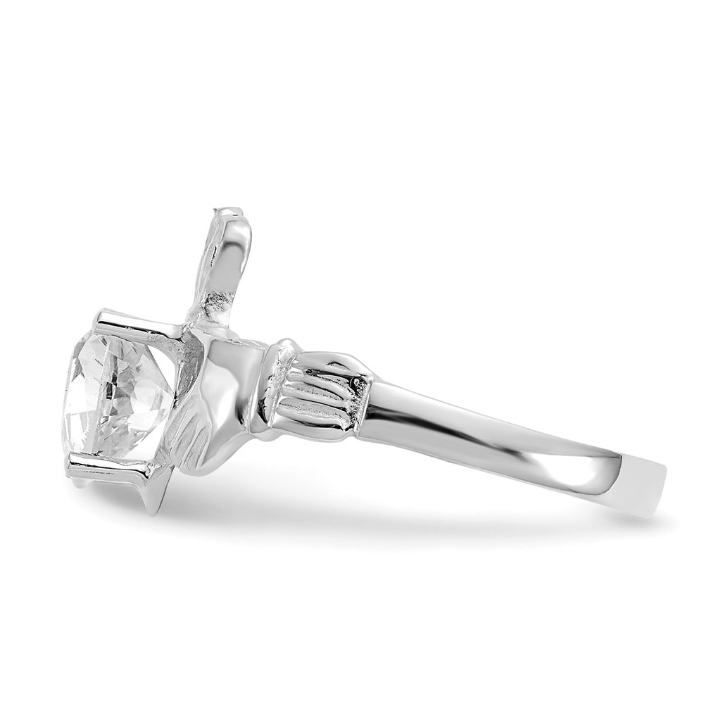 14k White Gold April Cubic Zirconia Heart Birthstone Claddagh Ring