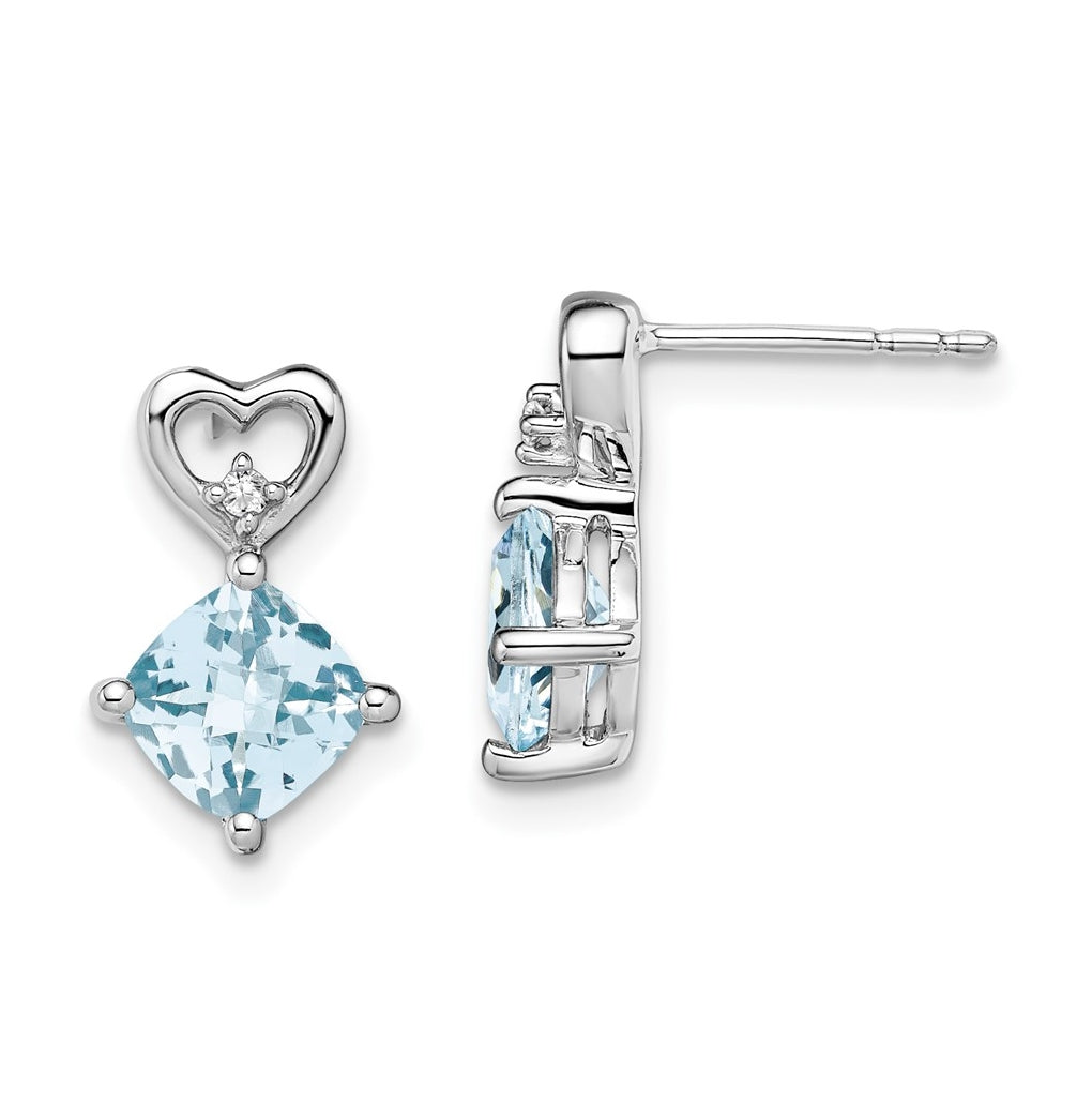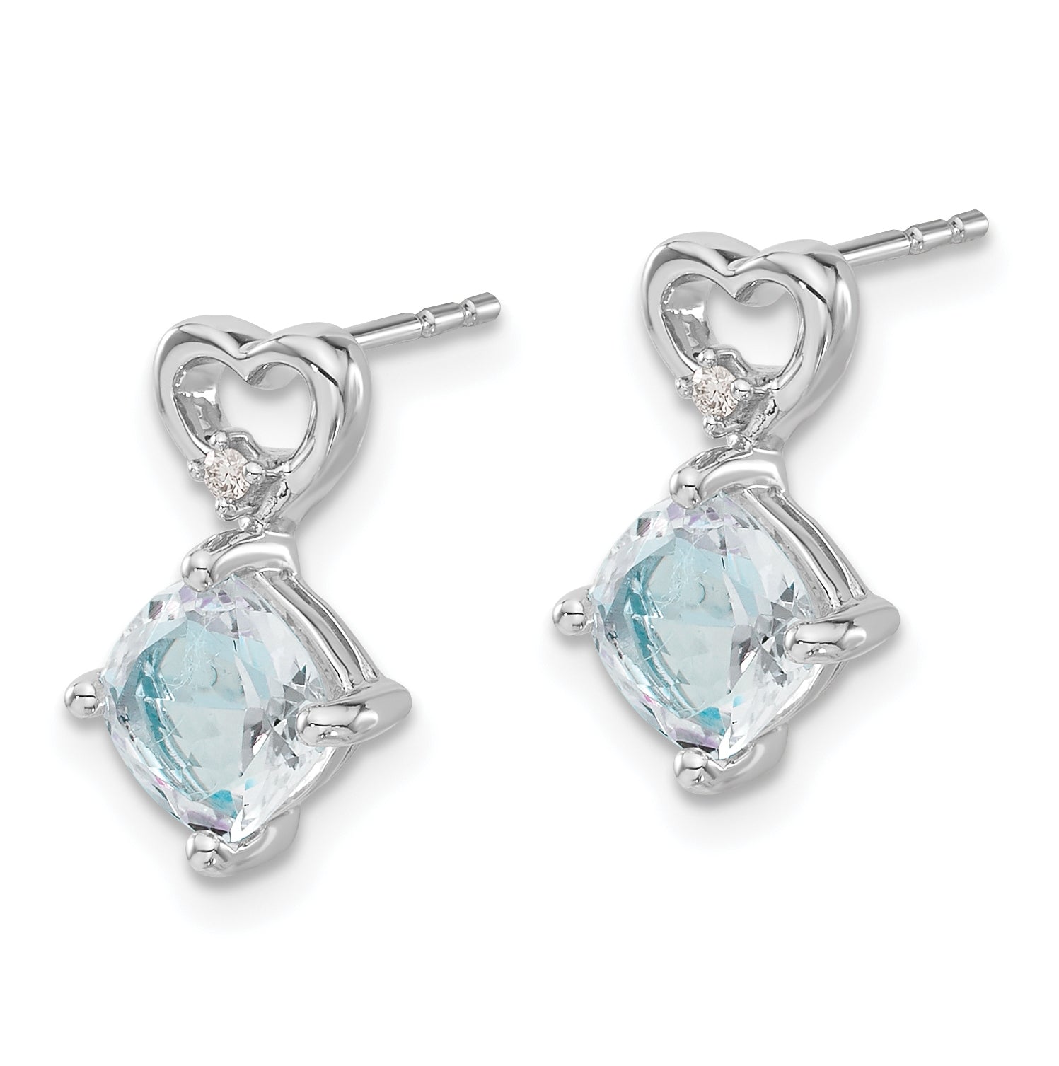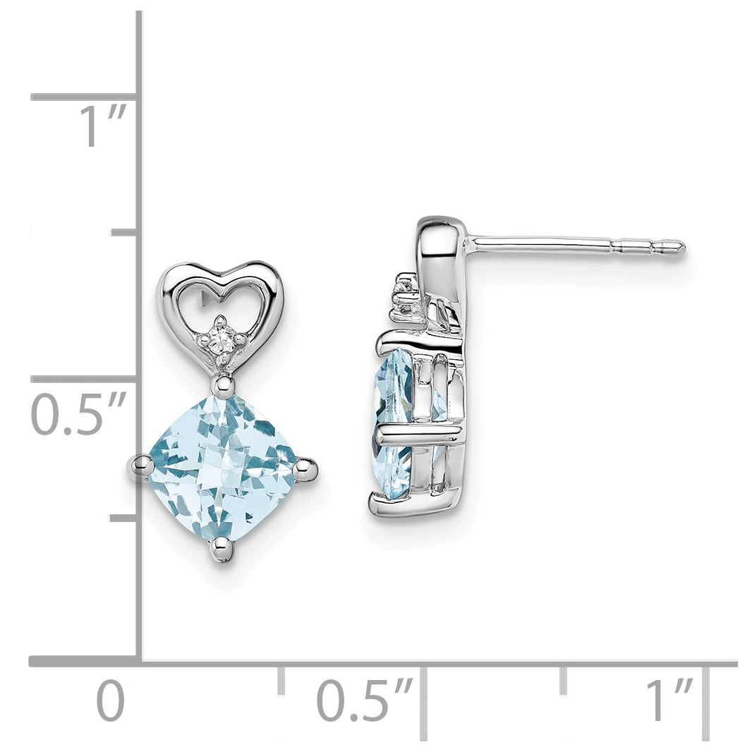 14k White Gold Aquamarine and Diamond Heart Earrings