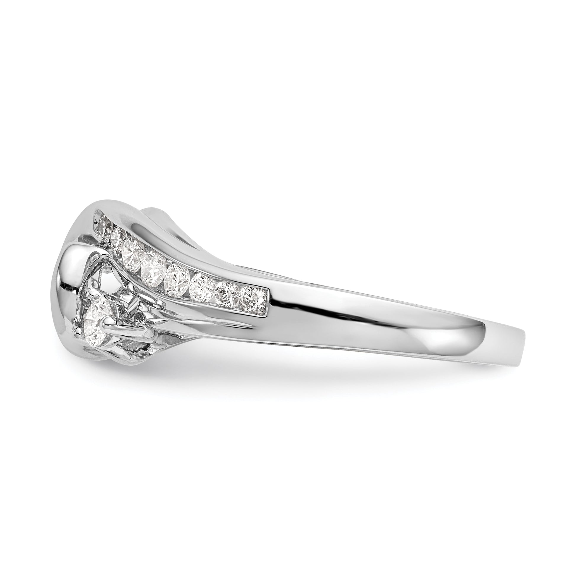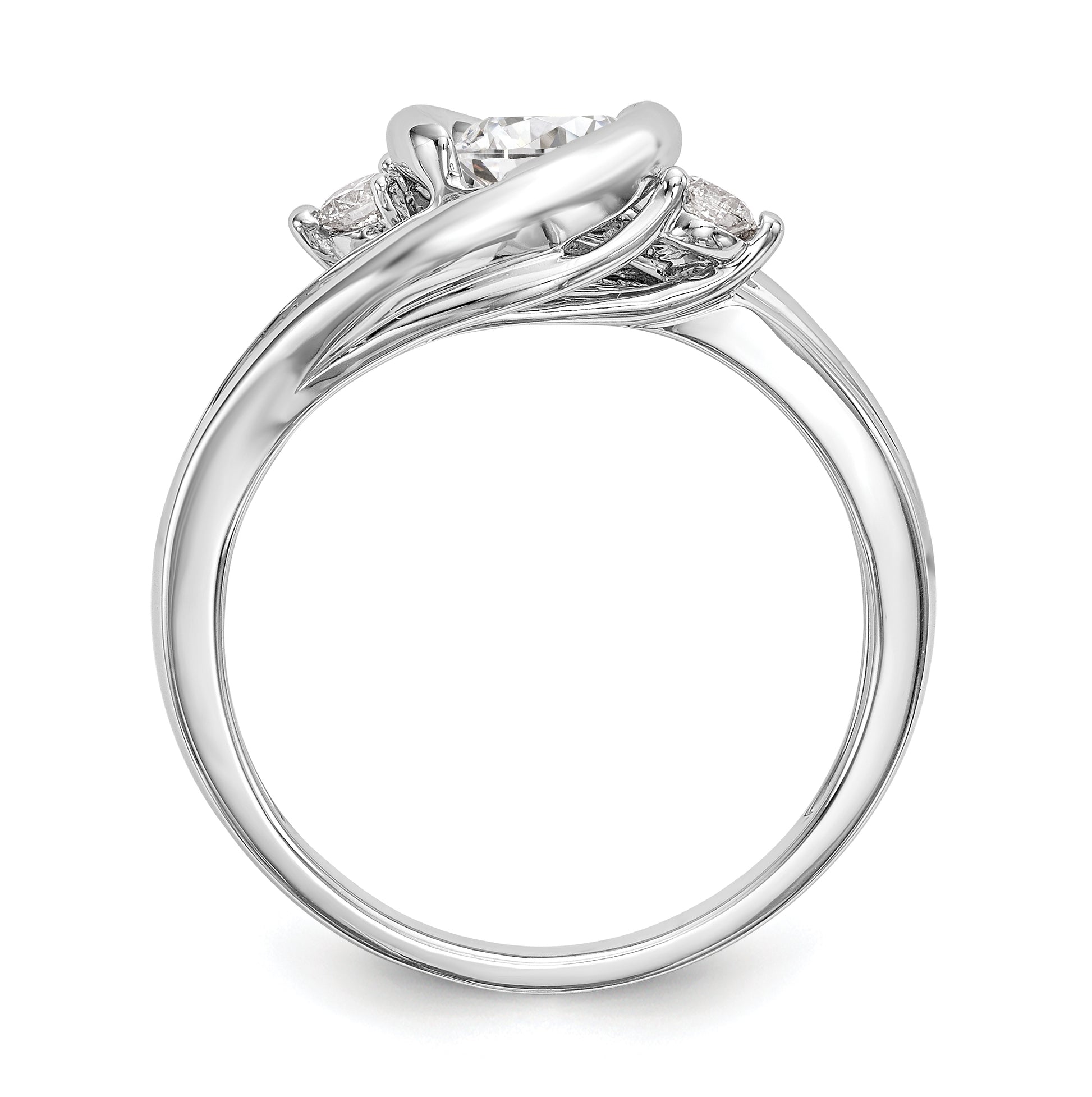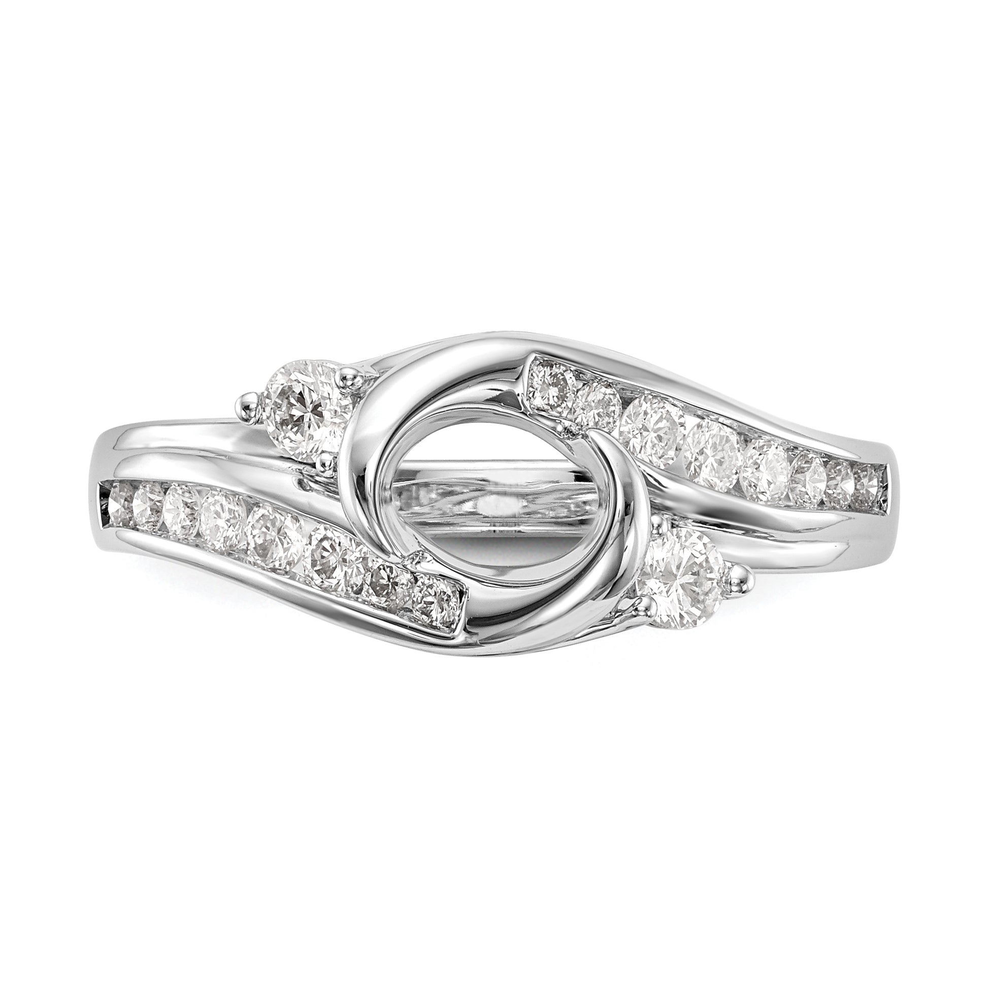 14k White Gold By-Pass (Holds 3/4 carat (5.8mm) Round Center Half-Bezel) 3/8 carat Diamond Semi-Mount Engagement Ring