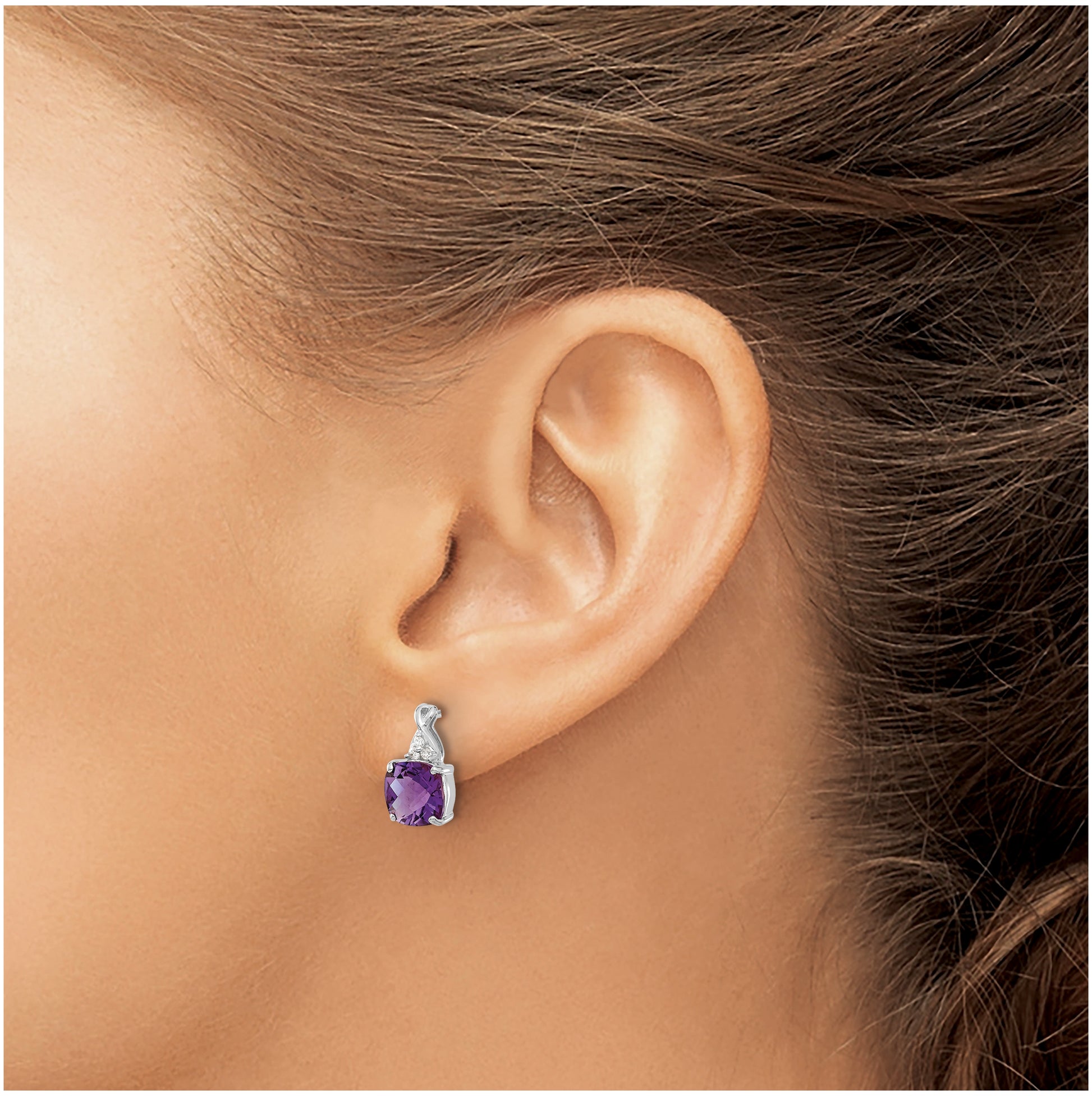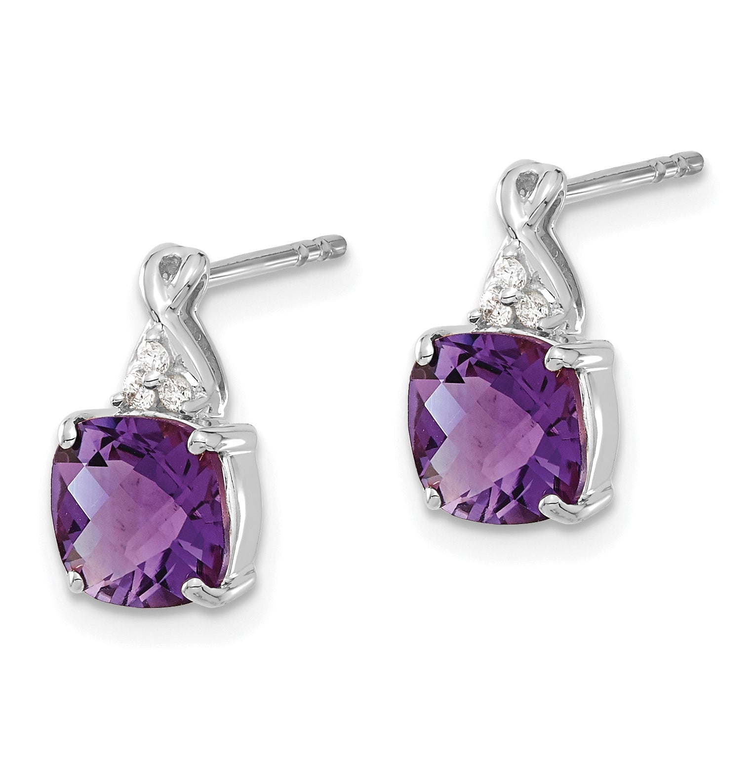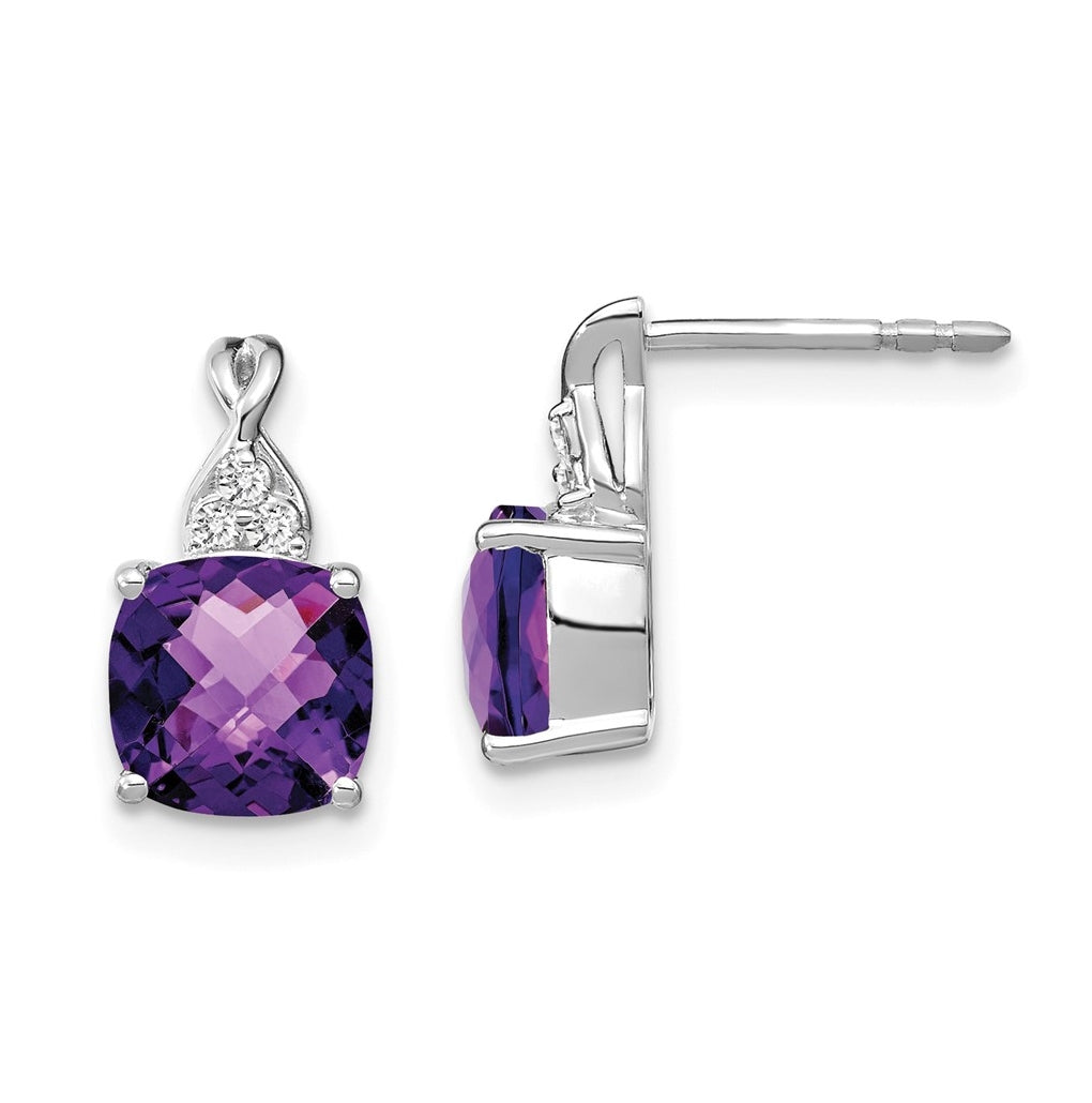 14K White Gold Checkerboard Amethyst and Diamond Earrings