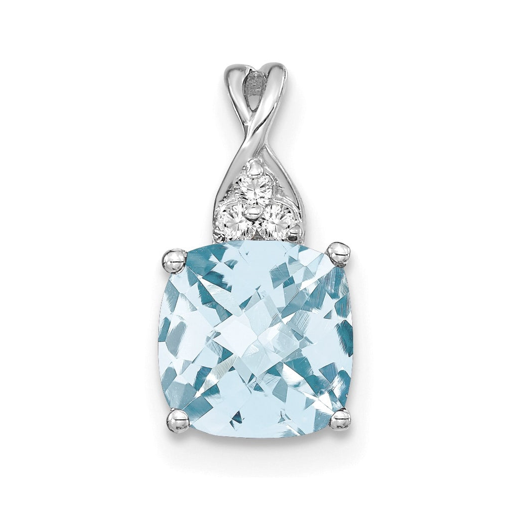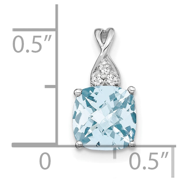 14K White Gold Checkerboard Aquamarine and Diamond Pendant