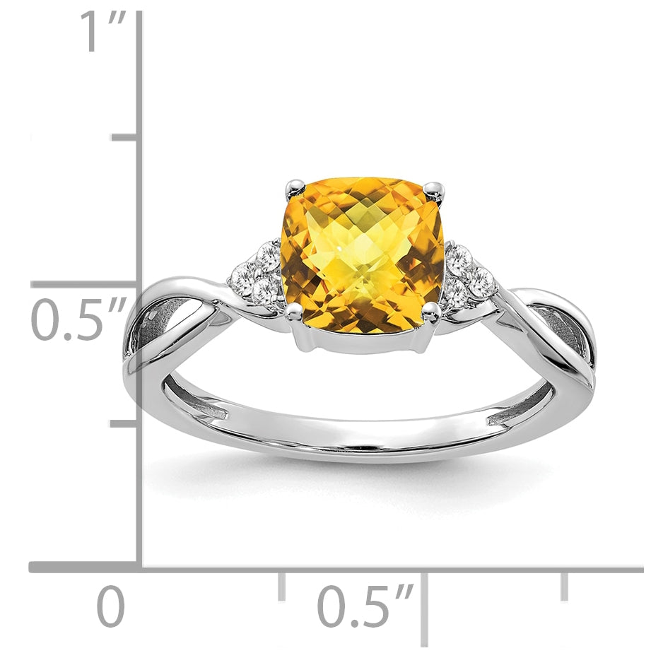 14K White Gold Checkerboard Citrine and Diamond Ring, Size 7