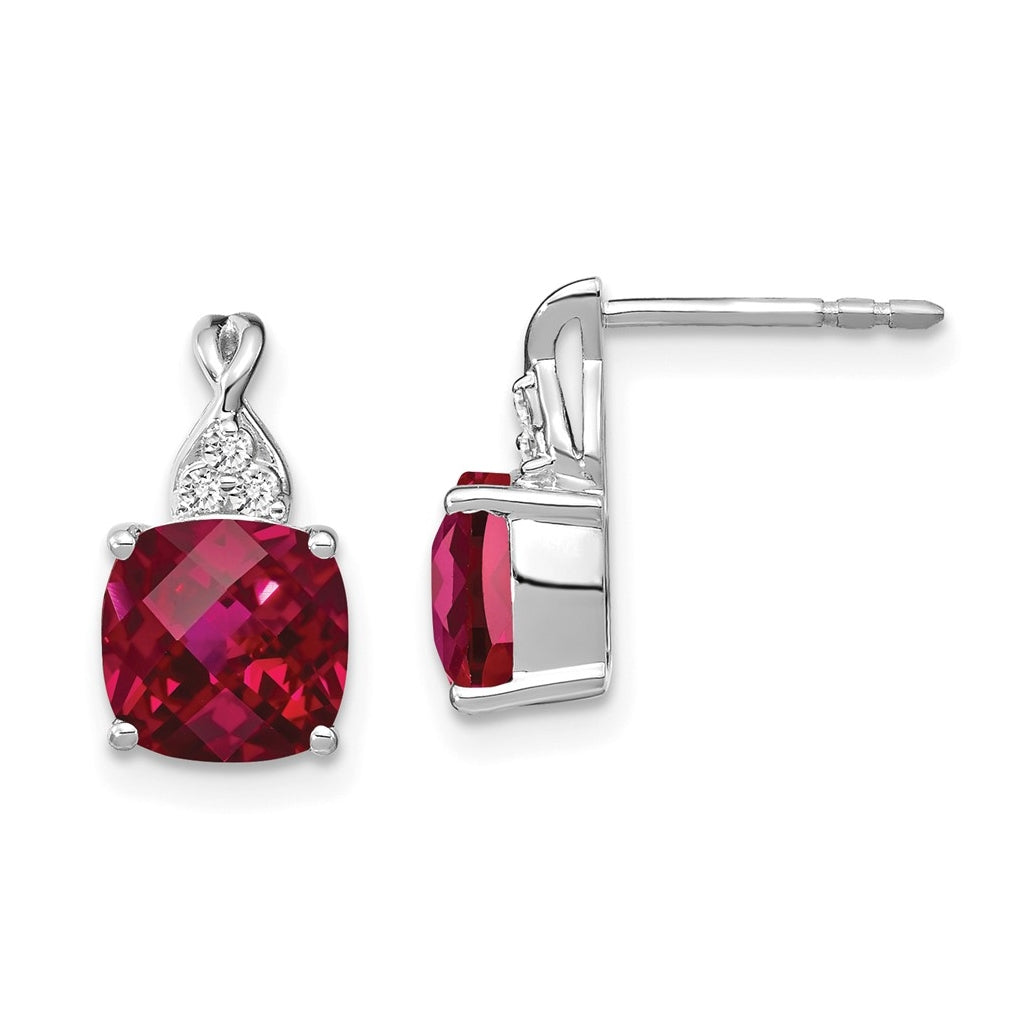 14K White Gold Checkerboard Created Ruby and Diamond Earrings