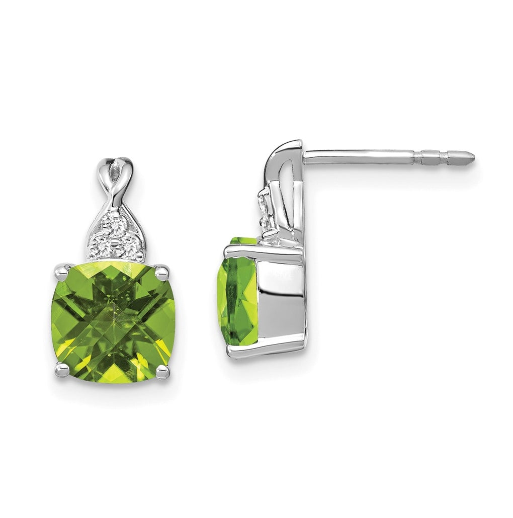 14K White Gold Checkerboard Peridot and Diamond Earrings