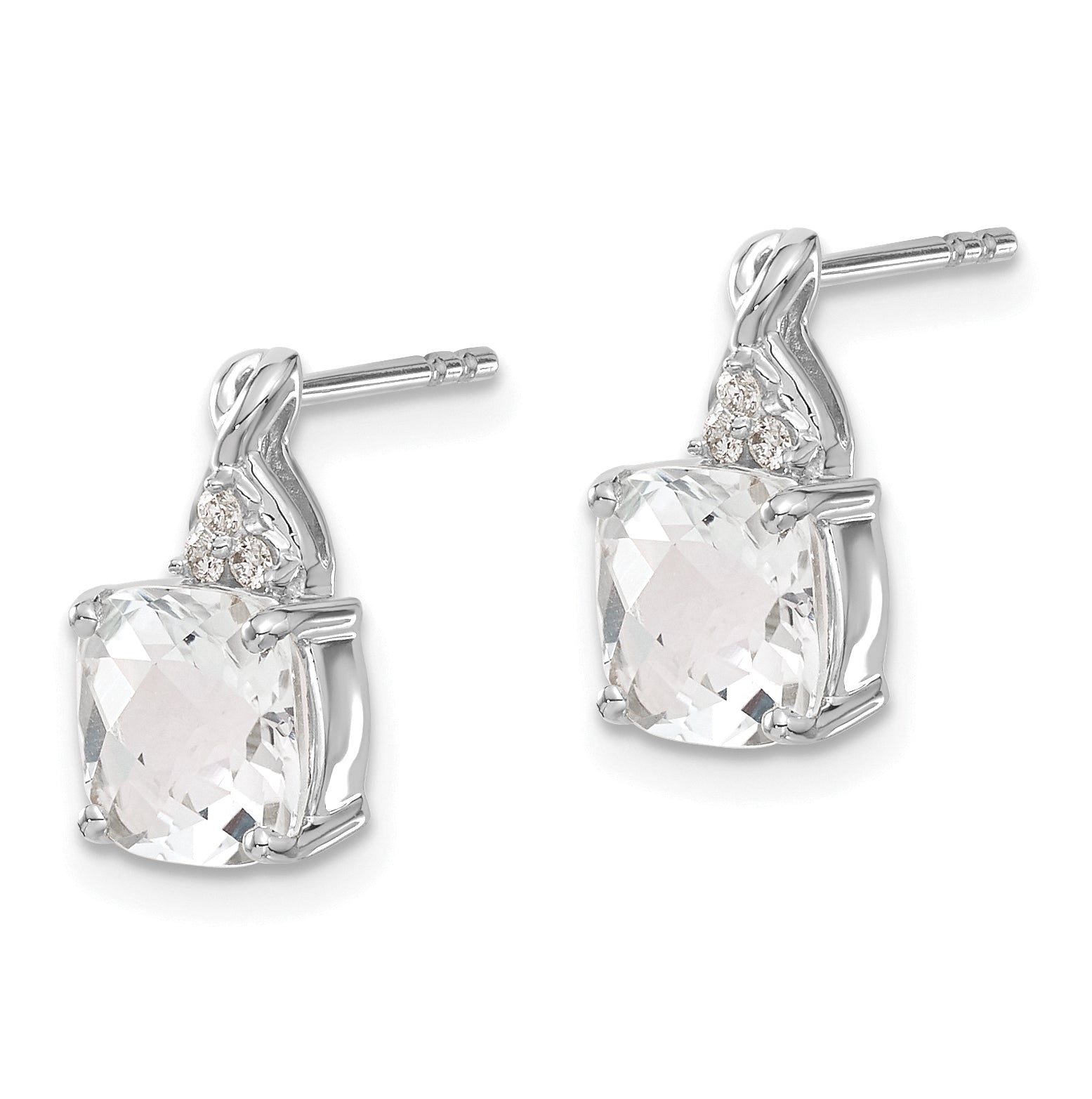 14K White Gold Checkerboard White Topaz and Diamond Earrings