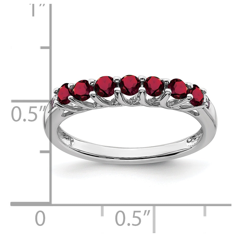 14k White Gold Created Ruby and Diamond 7-stone Ring, Size 7