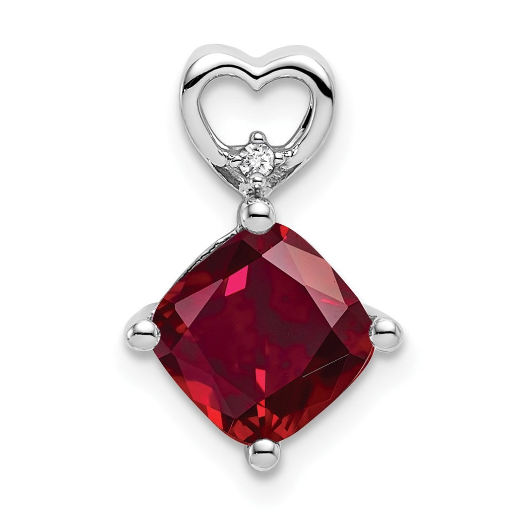 14k White Gold Created Ruby and Diamond Heart Chain Slide