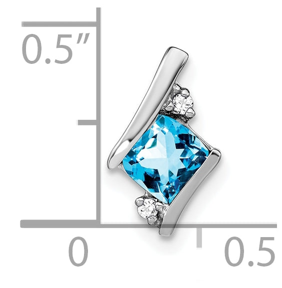14K White Gold Cushion Blue Topaz and Diamond Chain Slide