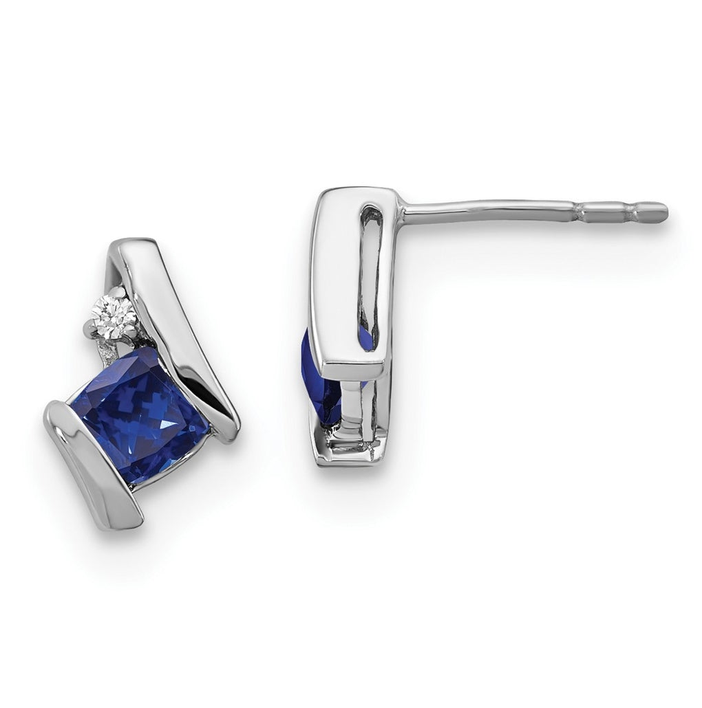 14K White Gold Cushion Cr. Sapphire and Diamond Earrings