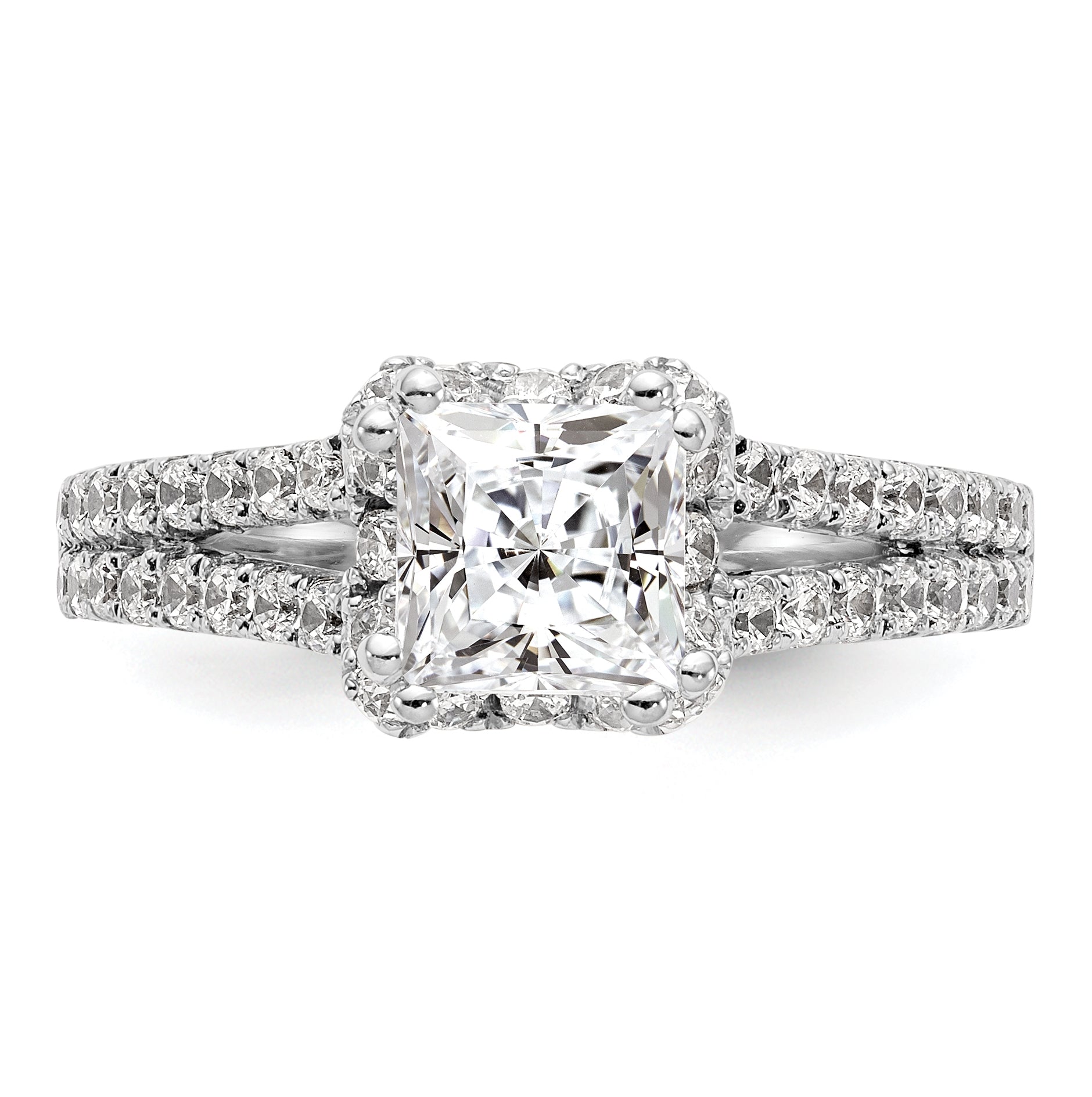 14K White Gold Diamond Princess Semi-Mount Square Halo Engagement Ring