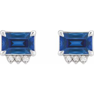 - Description: Lab-Grown Blue Sapphire And .04 Ctw Natural Diamond 4-Claw Prong Earrings