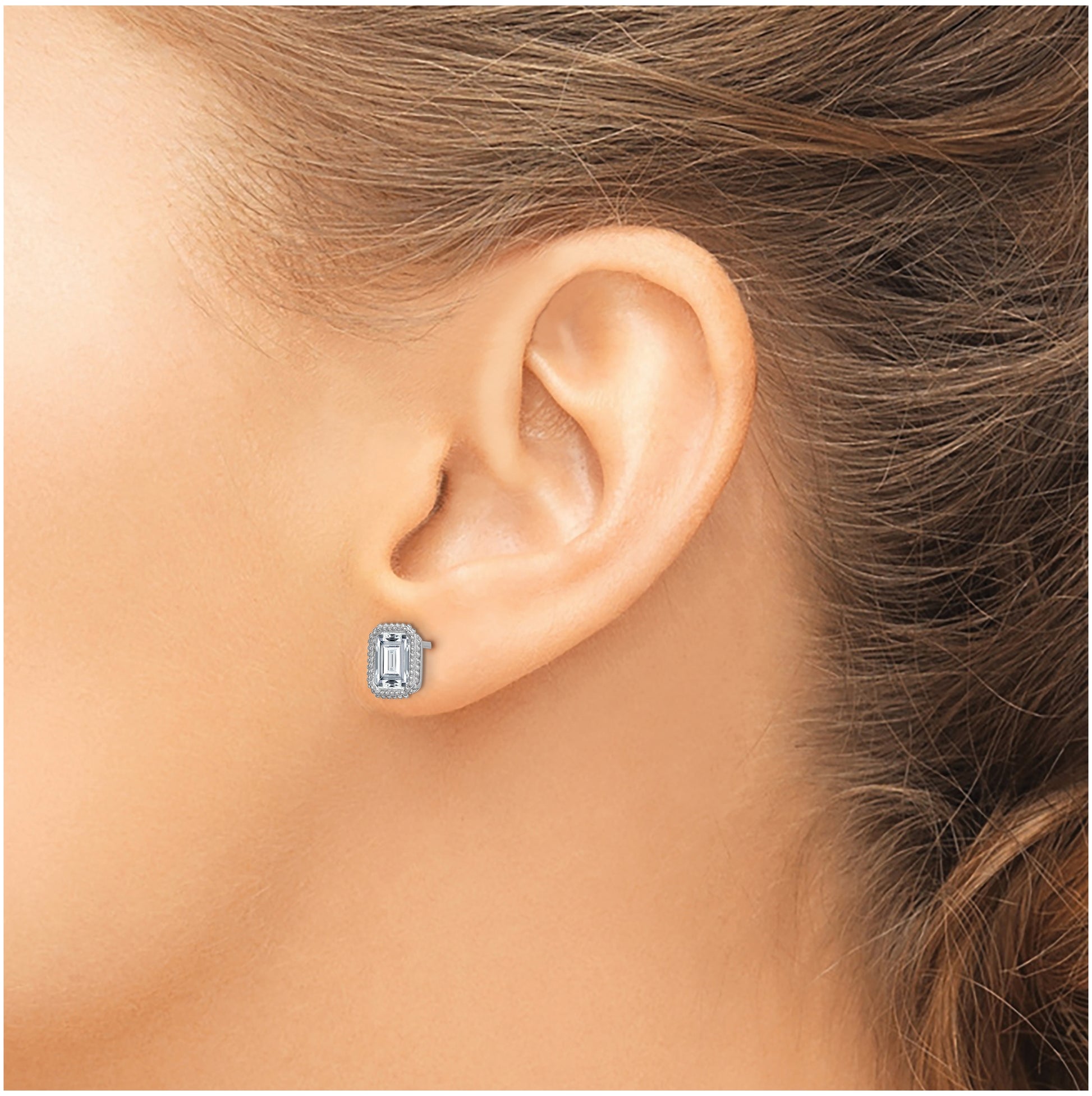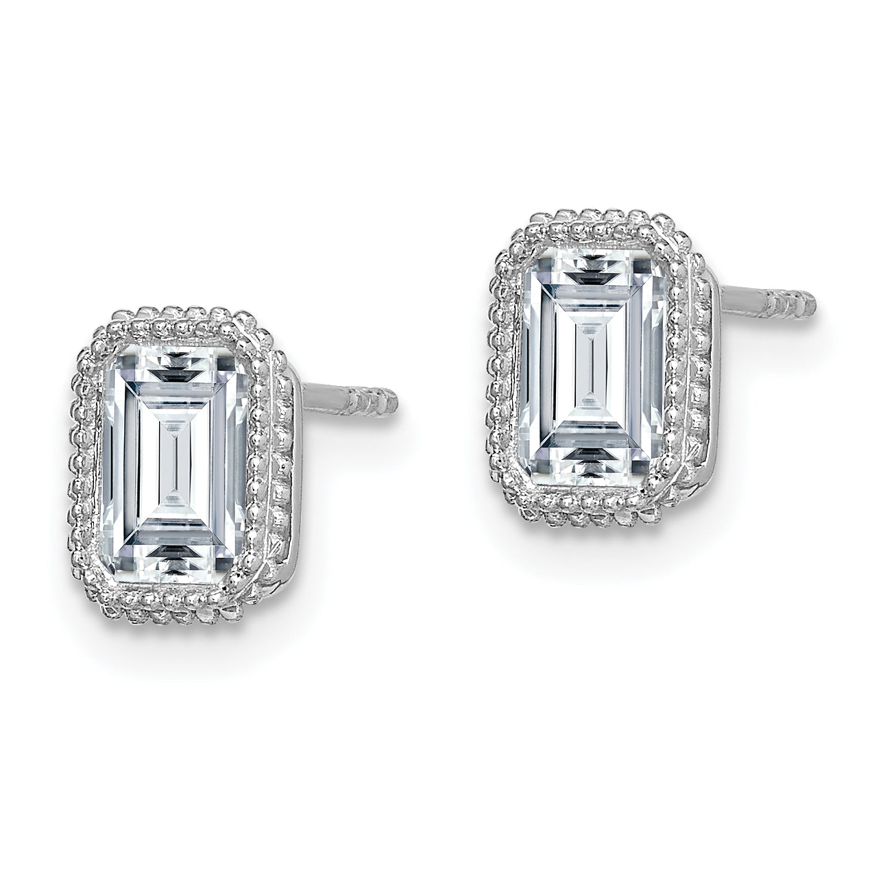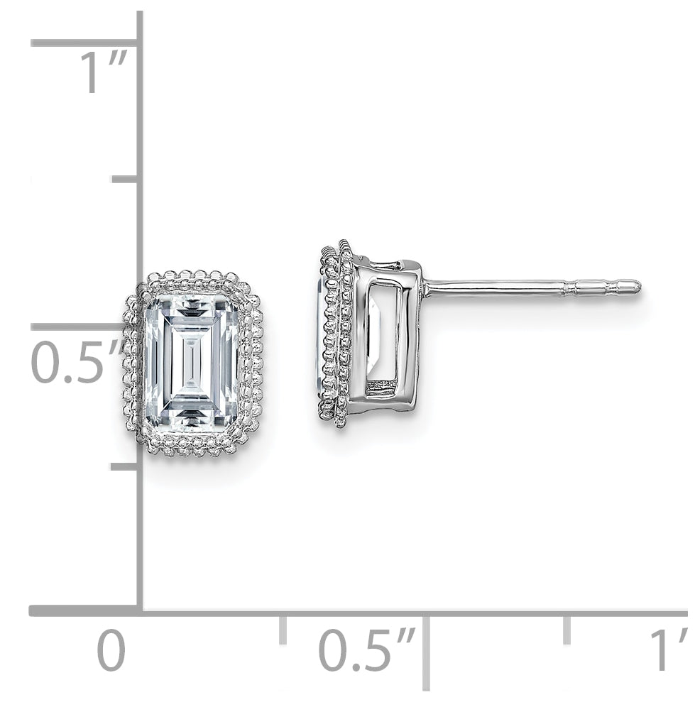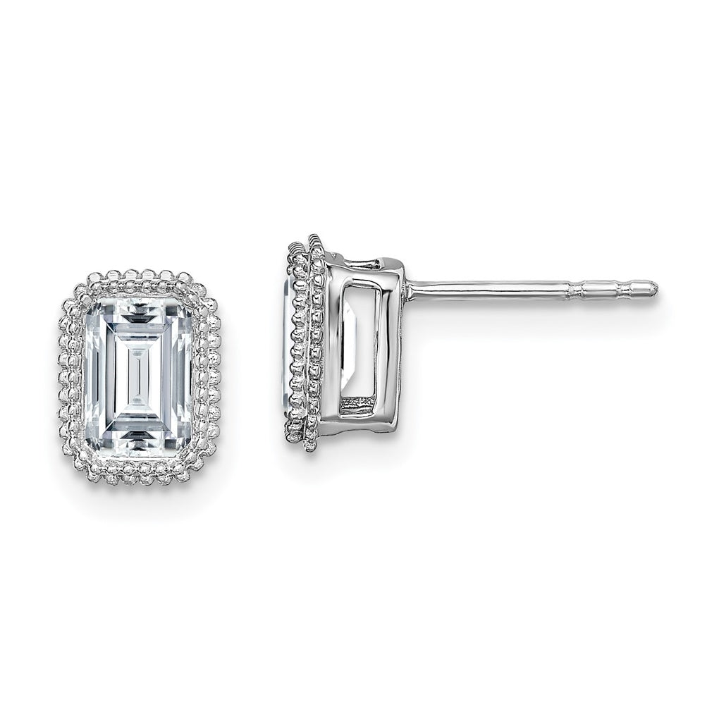 14k White Gold Emerald Beaded Bezel Earring G H I True Light Moissanite, 7.9mm