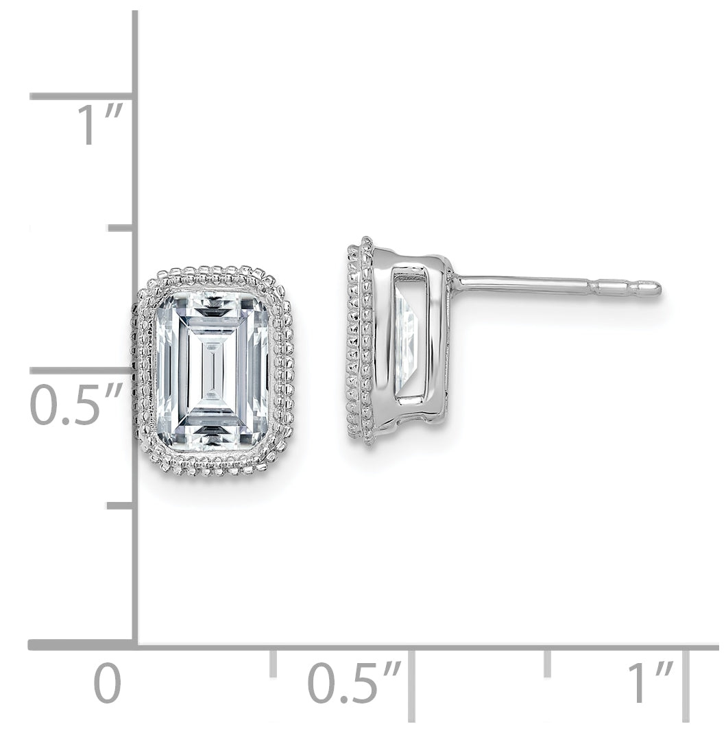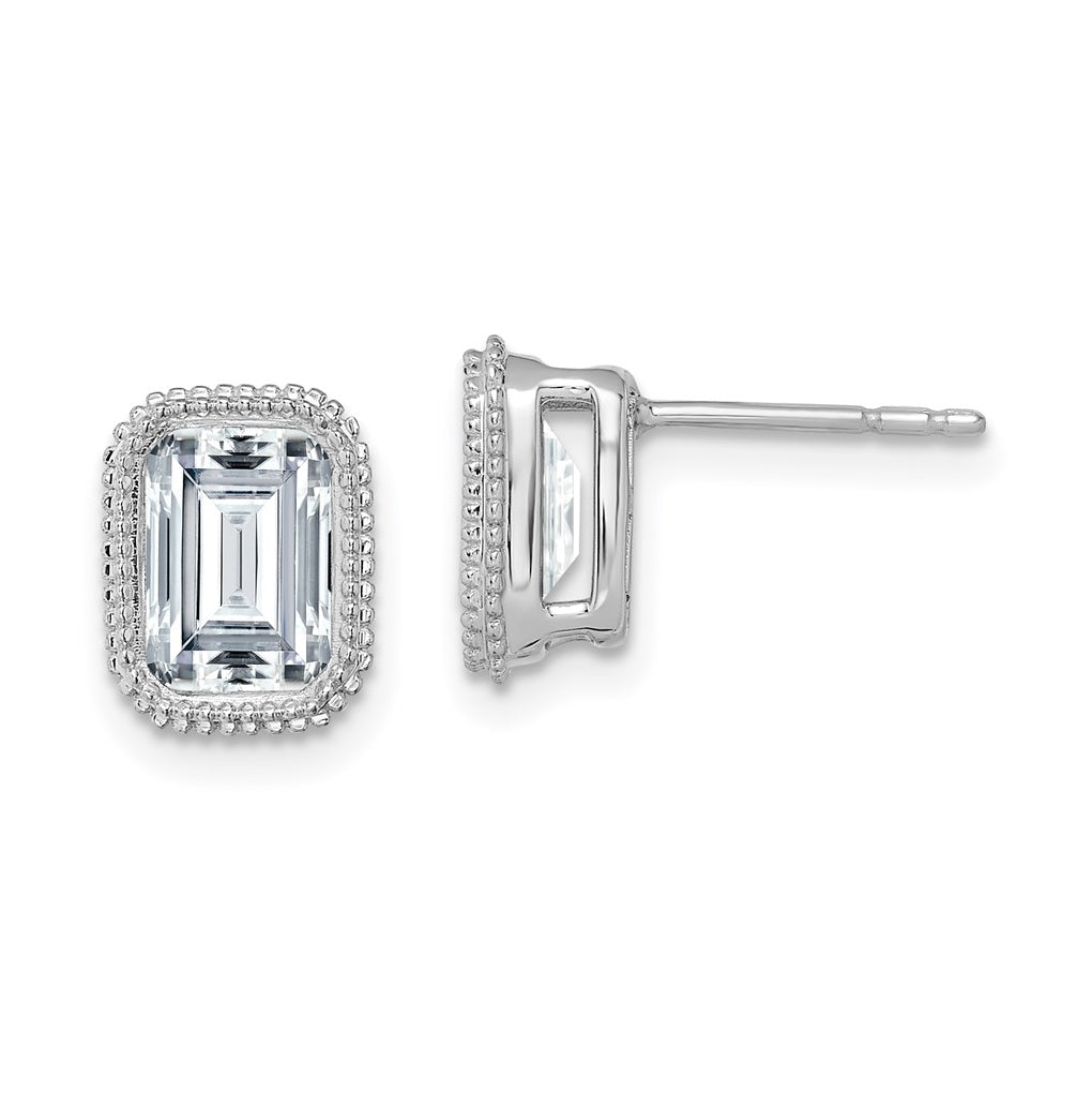 14k White Gold Emerald Beaded Bezel Earring G H I True Light Moissanite, 9.3mm