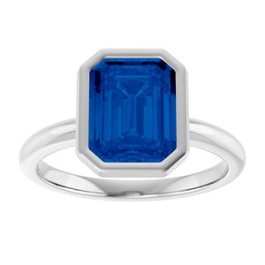 14K White Gold Emerald Shape 9 X 7 Mm Lab-Grown Blue Sapphire Ring Size 7