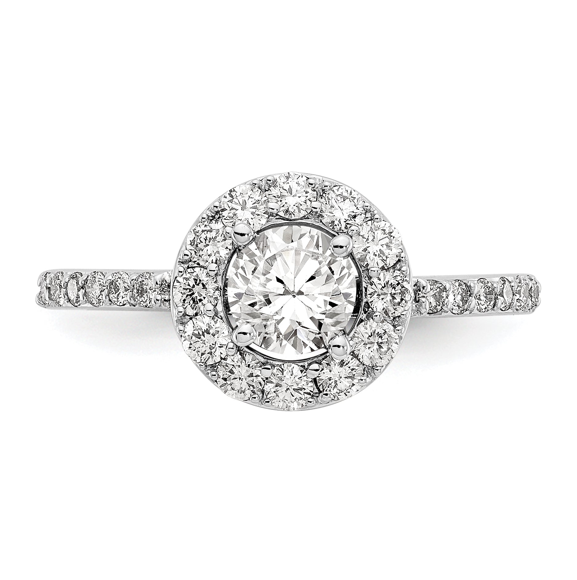 14K White Gold Halo (Holds 1/2 carat (5.00mm) Round Center) 1/2 carat Diamond Semi-Mount Engagement Ring