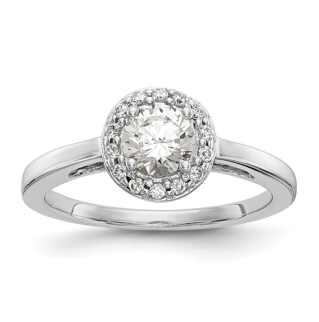 14K White Gold Halo (Holds 1/2 carat (5.2mm) Round Center) 1/8 carat Diamond Semi-Mount Engagement Ring