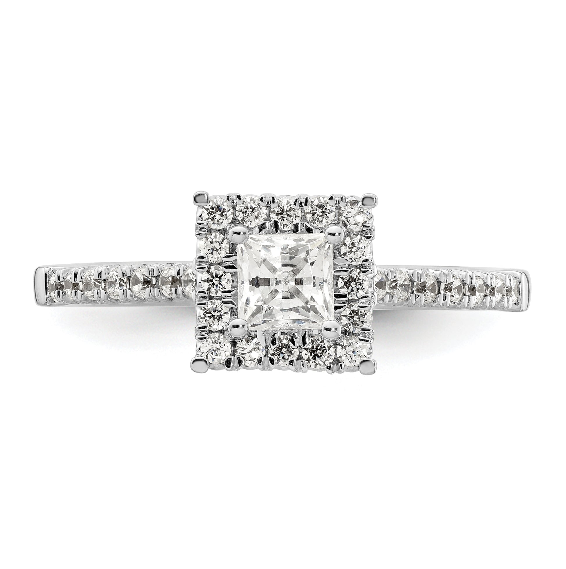 14k White Gold Halo (Holds 1/3 carat (3.9mm) Princess Center) 1/3 carat Diamond Semi-mount Engagement Ring