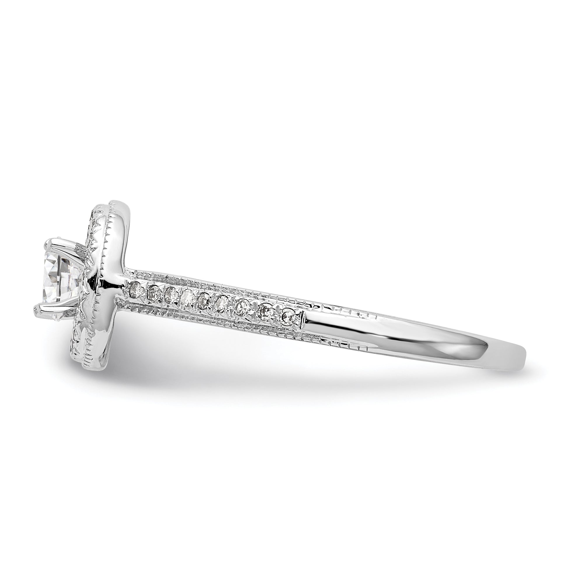 14K White Gold Halo (Holds 1/4 carat (4.00mm) Round Center) 1/10 carat Diamond Semi-Mount Engagement Ring