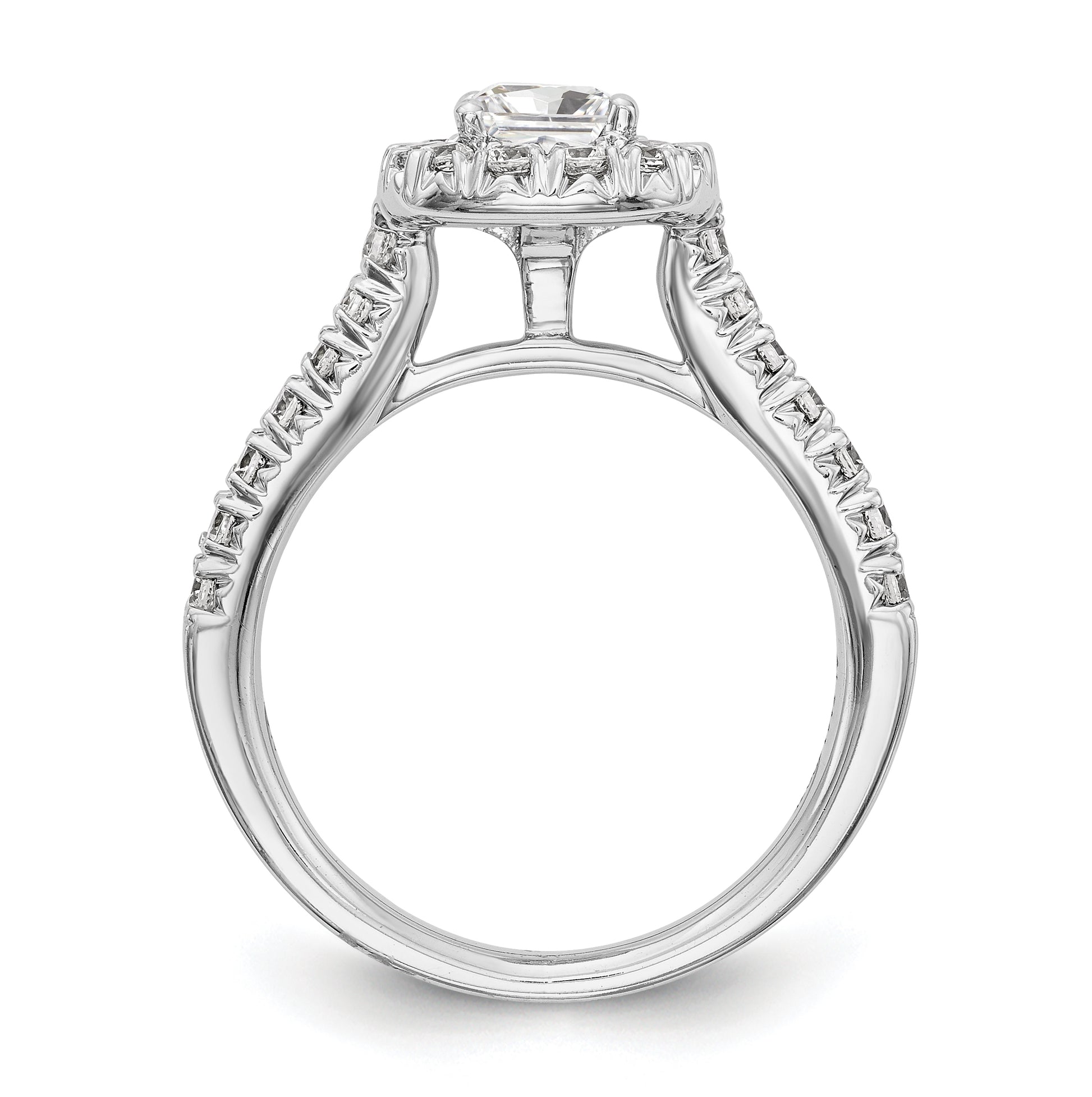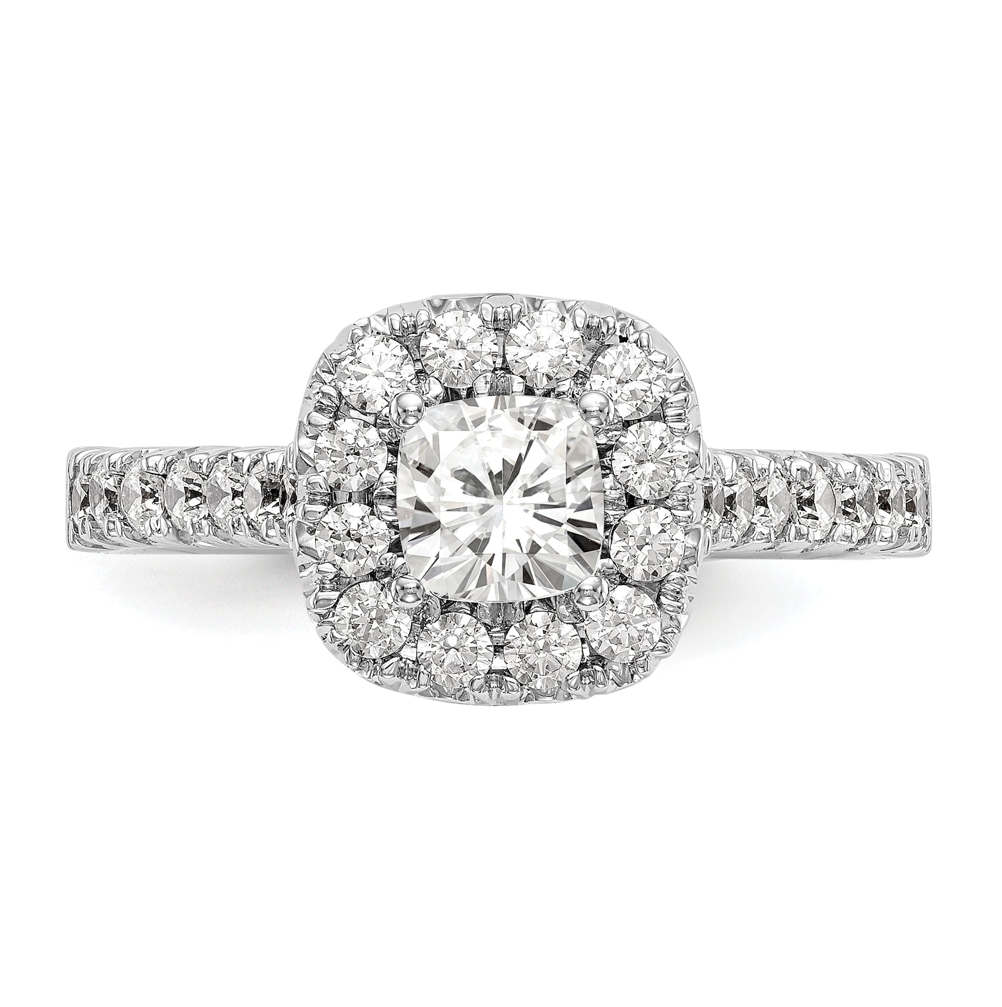 14K White Gold Halo Plus (Holds 1/2 carat (4.8mm) Cushion Center) 3/4 carat Diamond Semi-Mount Engagement Ring