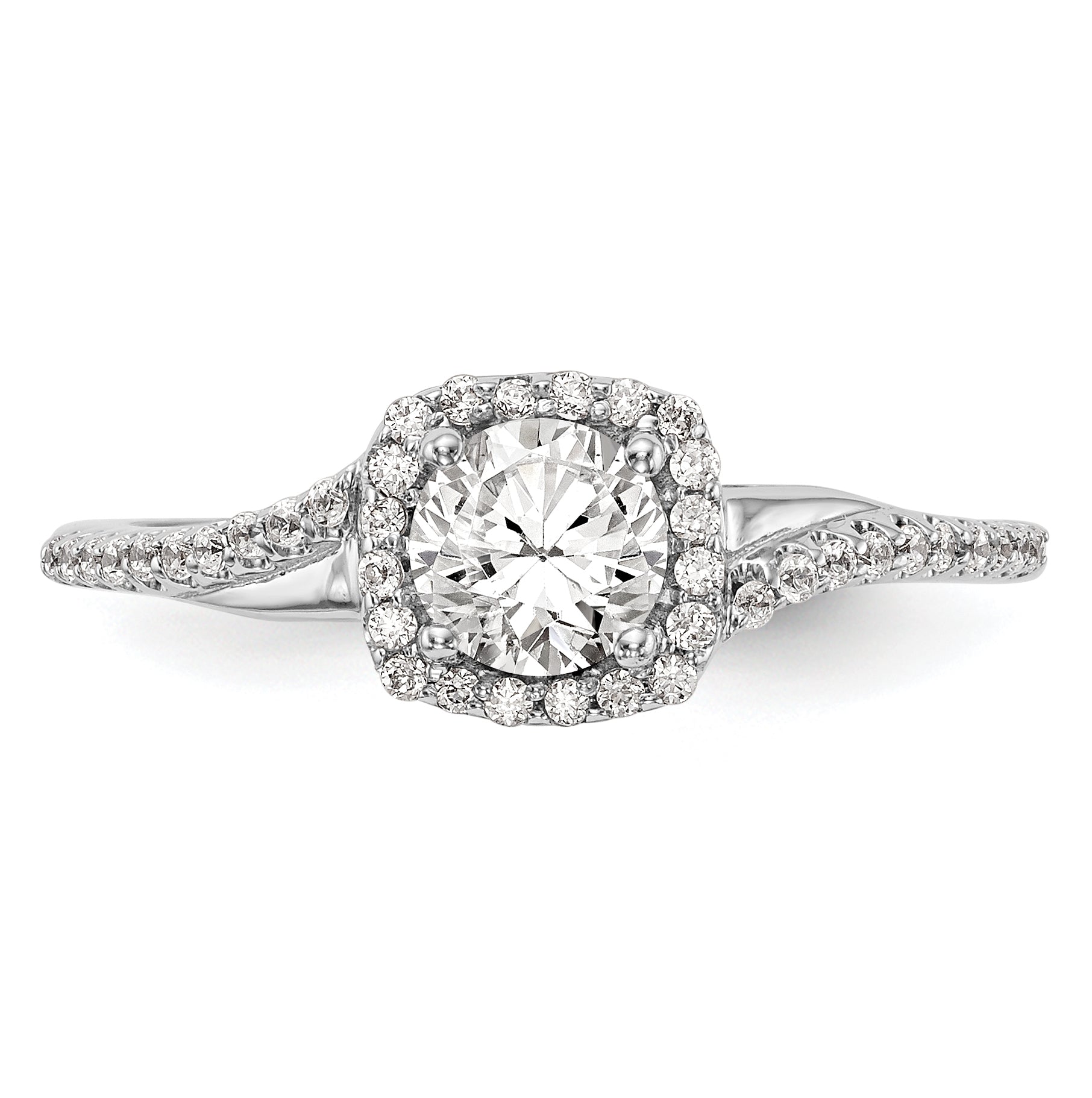 14K White Gold Halo Plus (Holds 1/2 carat (5.2mm) Round Center) 1/5 carat Diamond Semi-Mount Engagement Ring