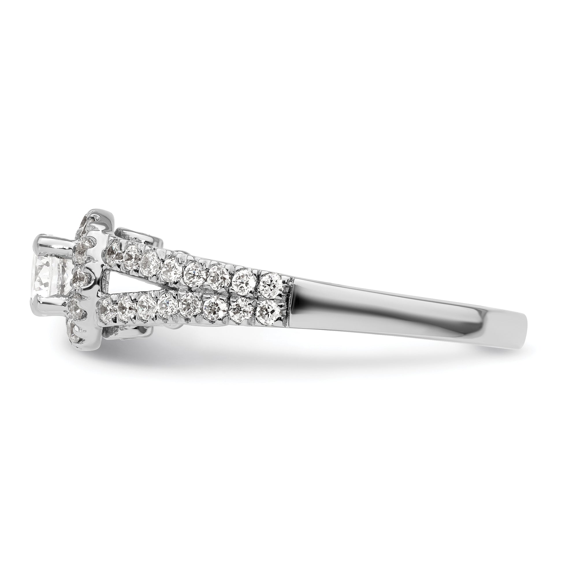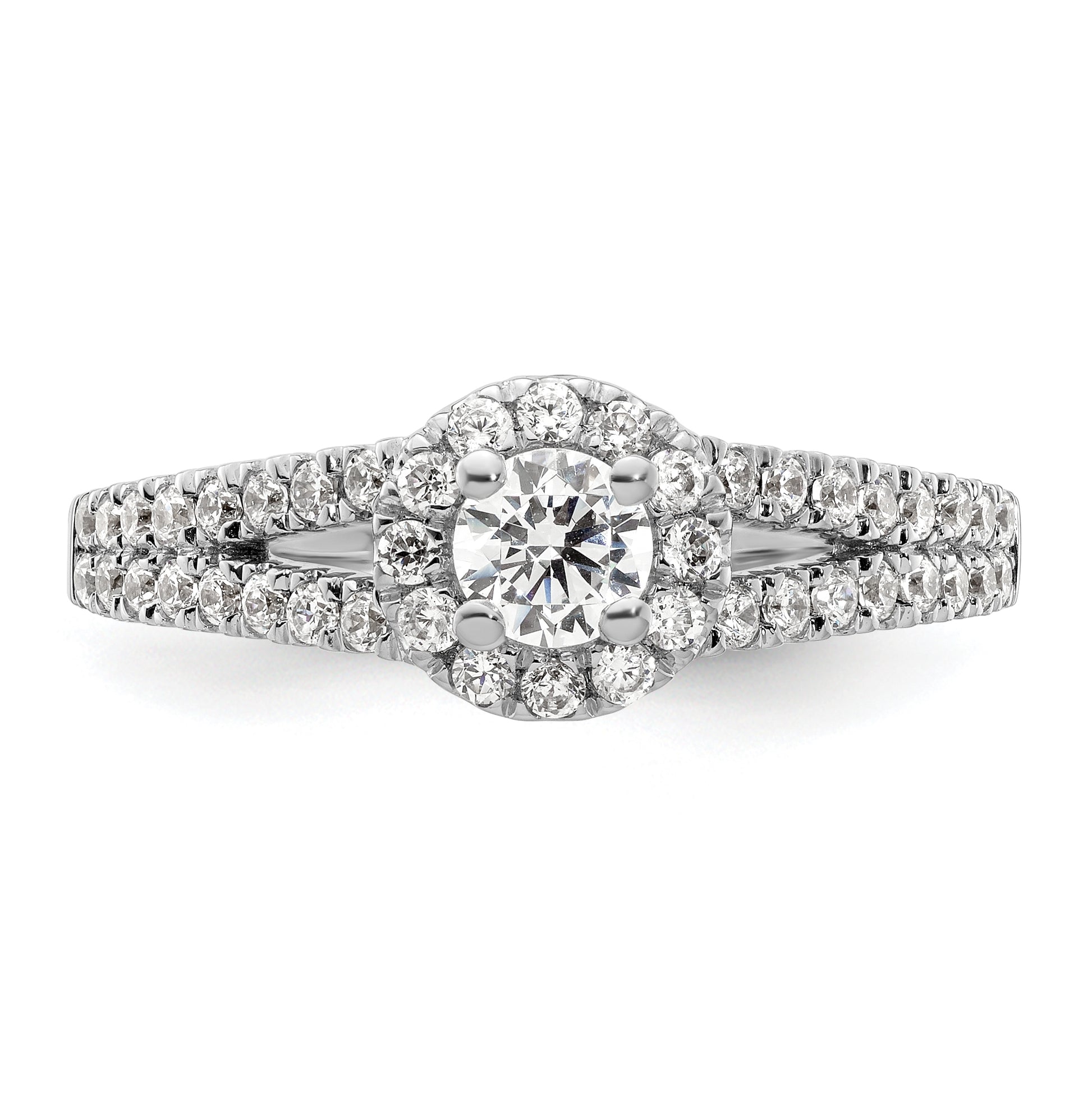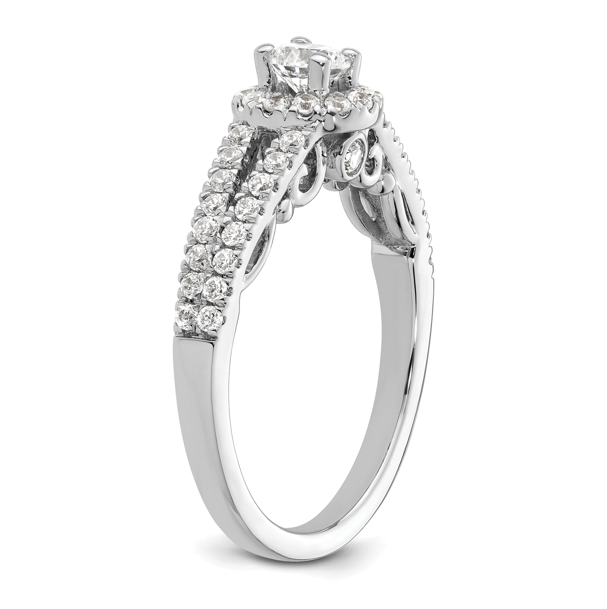 14K White Gold Halo Plus (Holds 1/4 carat (4.1mm) Round Center) 1/2 carat Diamond Semi-Mount Engagement Ring