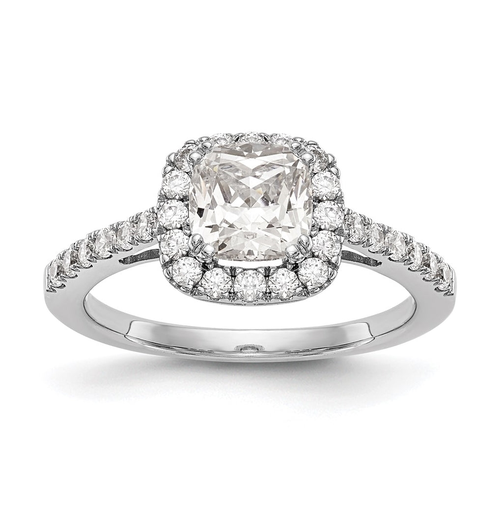 14K White Gold Halo Plus (Holds 1 carat (5.8mm) Cushion Center) 3/8 carat Diamond Semi-Mount Engagement Ring