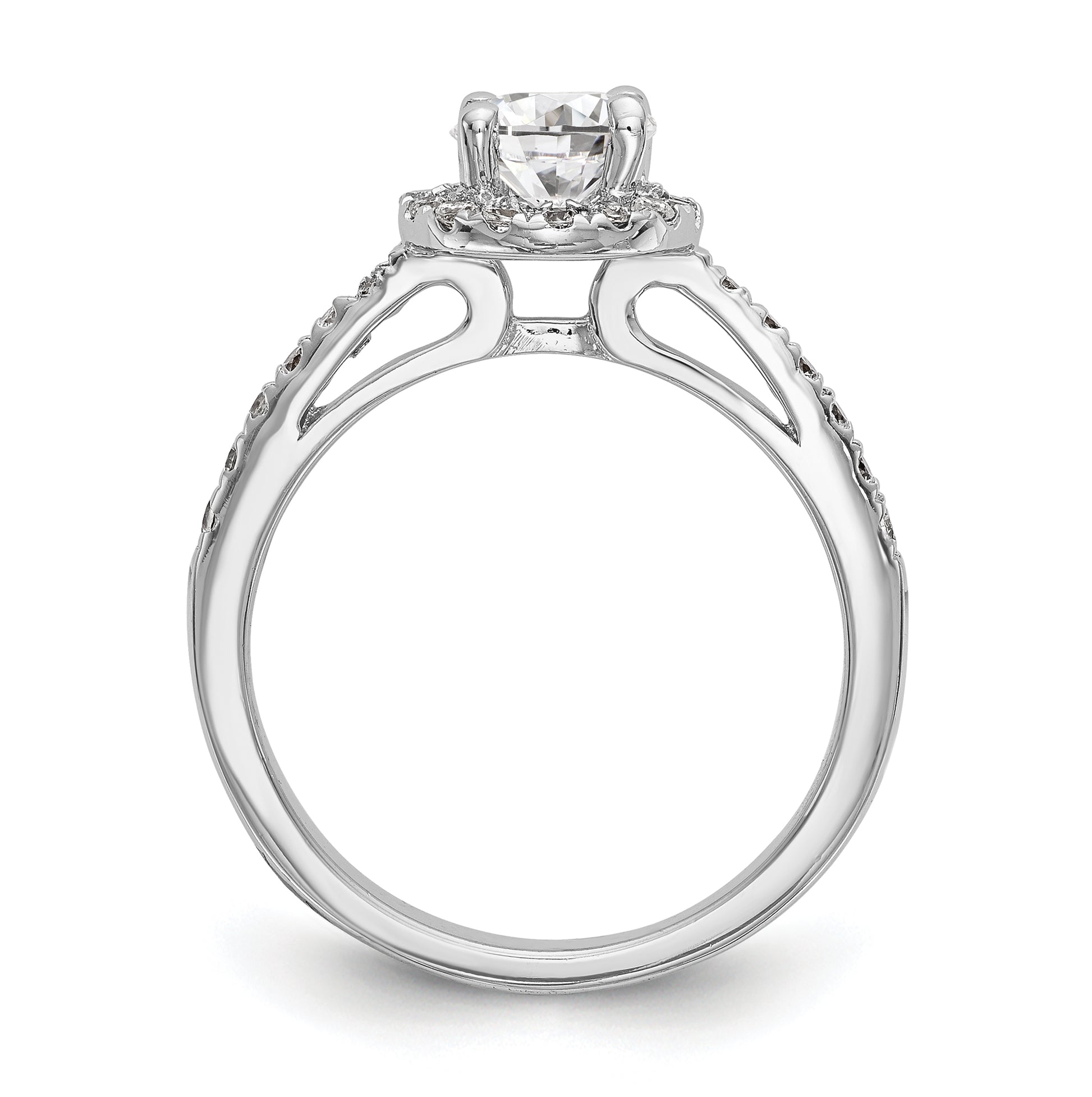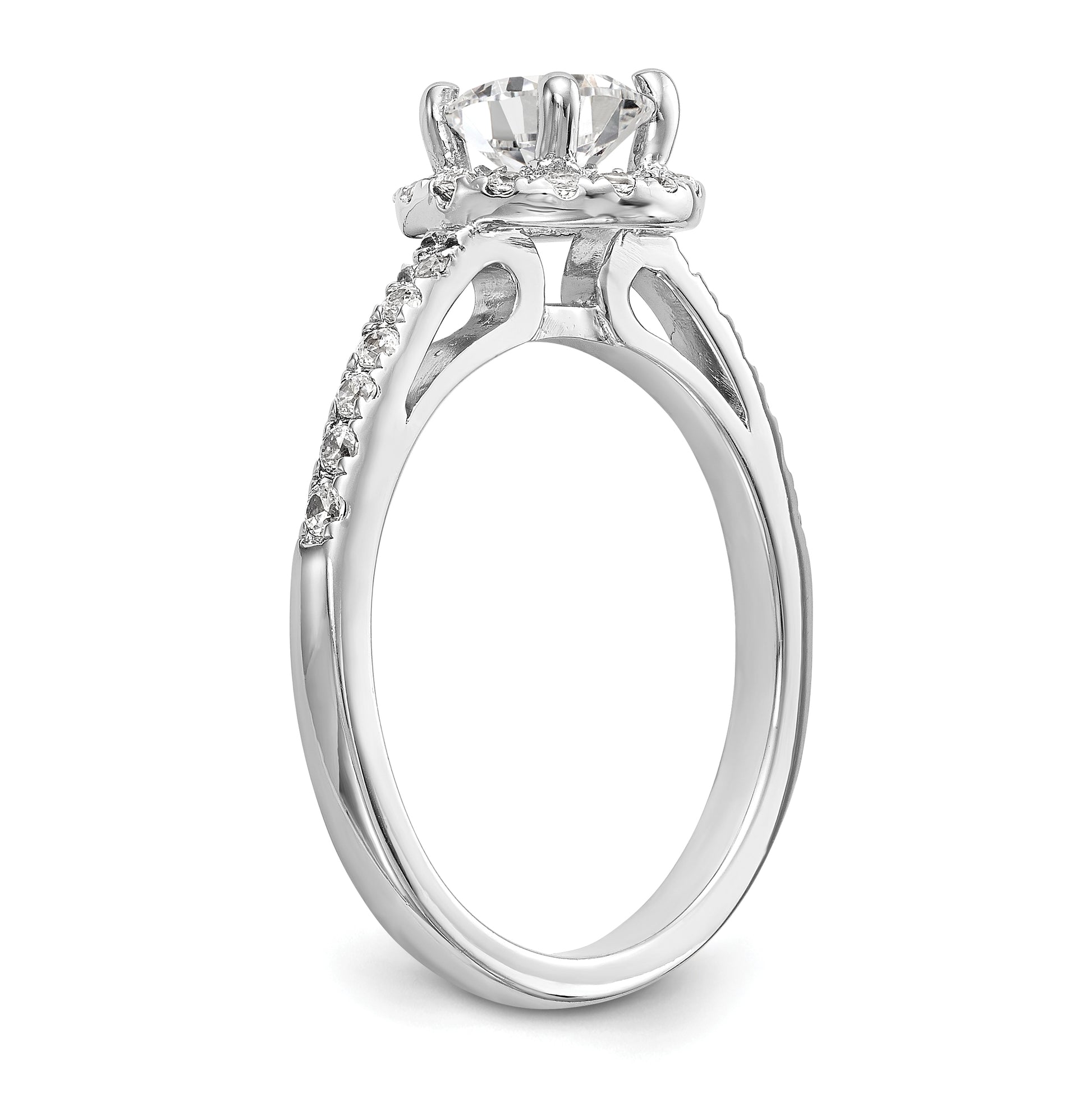 14K White Gold Halo Plus (Holds 1 carat (6.5mm) Round Center) 1/2 carat Diamond Semi-Mount Engagement Ring, 2 to 1.9 mm (tapered)