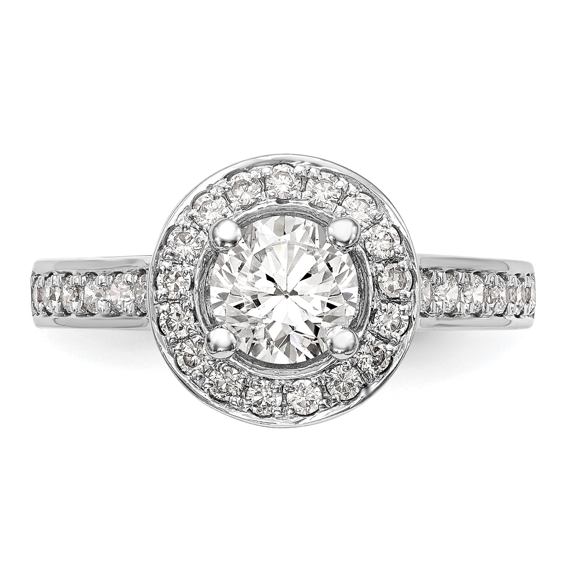 14K White Gold Halo Plus (Holds 1 carat (6.5mm) Round Center) 3/8 carat Diamond Semi-Mount Engagement Ring