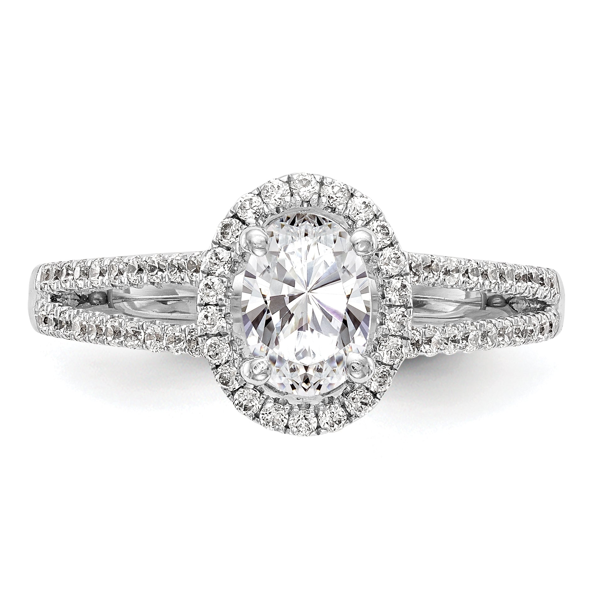 14K White Gold Halo Plus (Holds 1 carat (8.0x5.5mm) Oval Center) 1/3 carat Diamond Semi-Mount Engagement Ring
