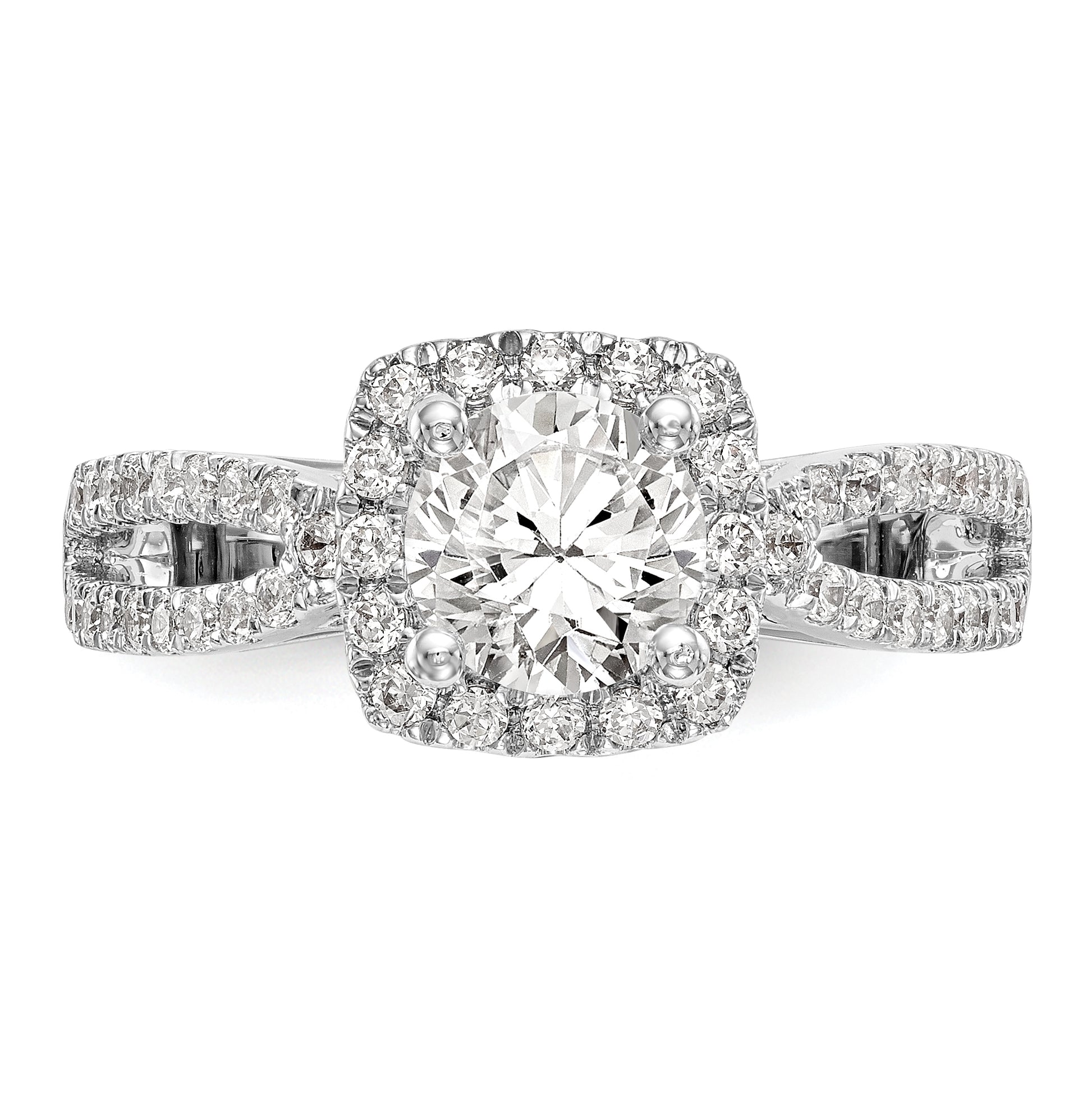 14k White Gold Halo Plus (Holds 1ct (6.5mm) Round Center) 5/8ct Diamond Semi-Mount Engagement Ring