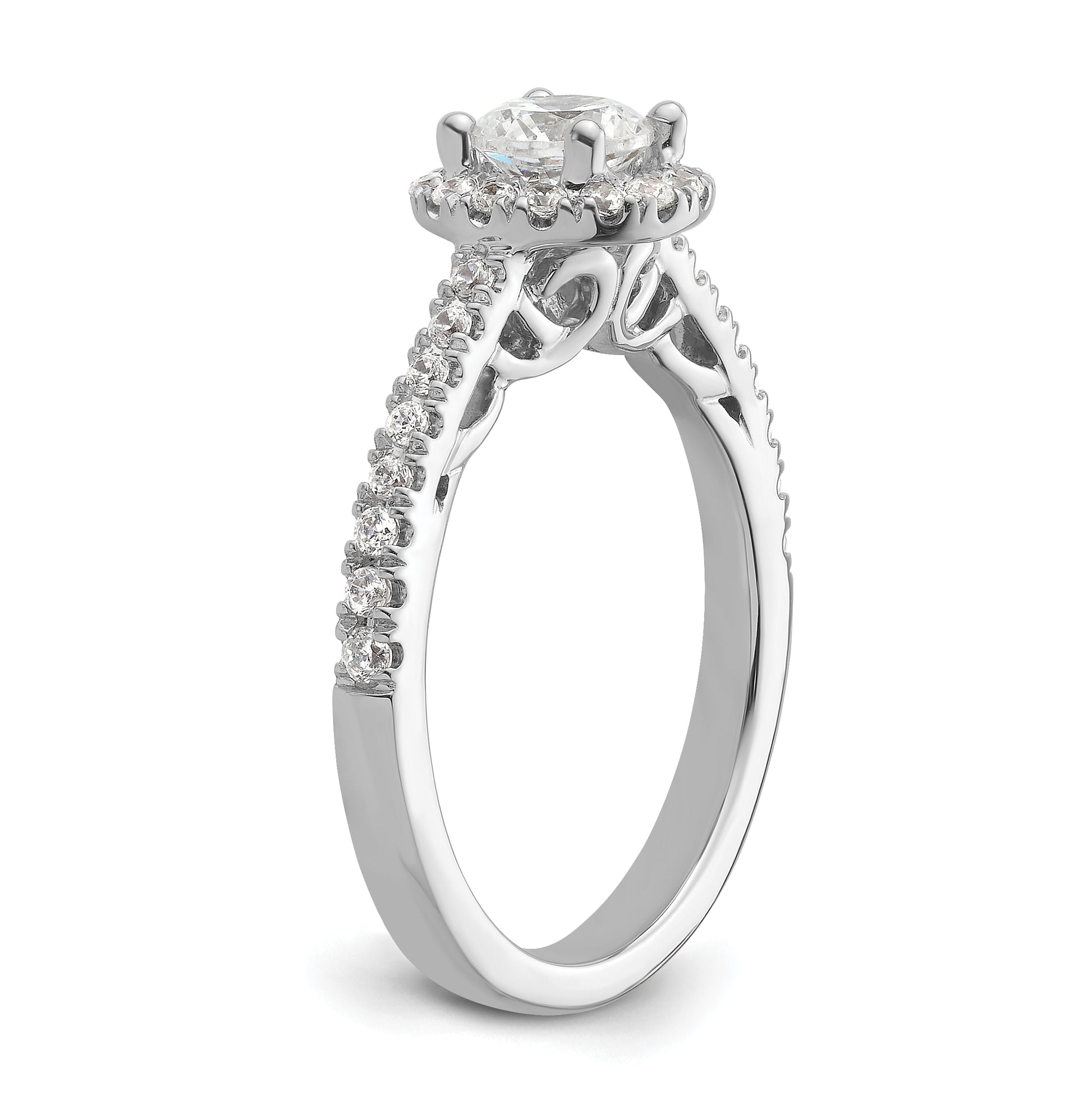 14K White Gold Halo Plus (Holds 3/4 carat (5.8mm) Round Center) 1/2 carat Diamond Semi-Mount Engagement Ring, 2.2 to 2 mm (tapered)