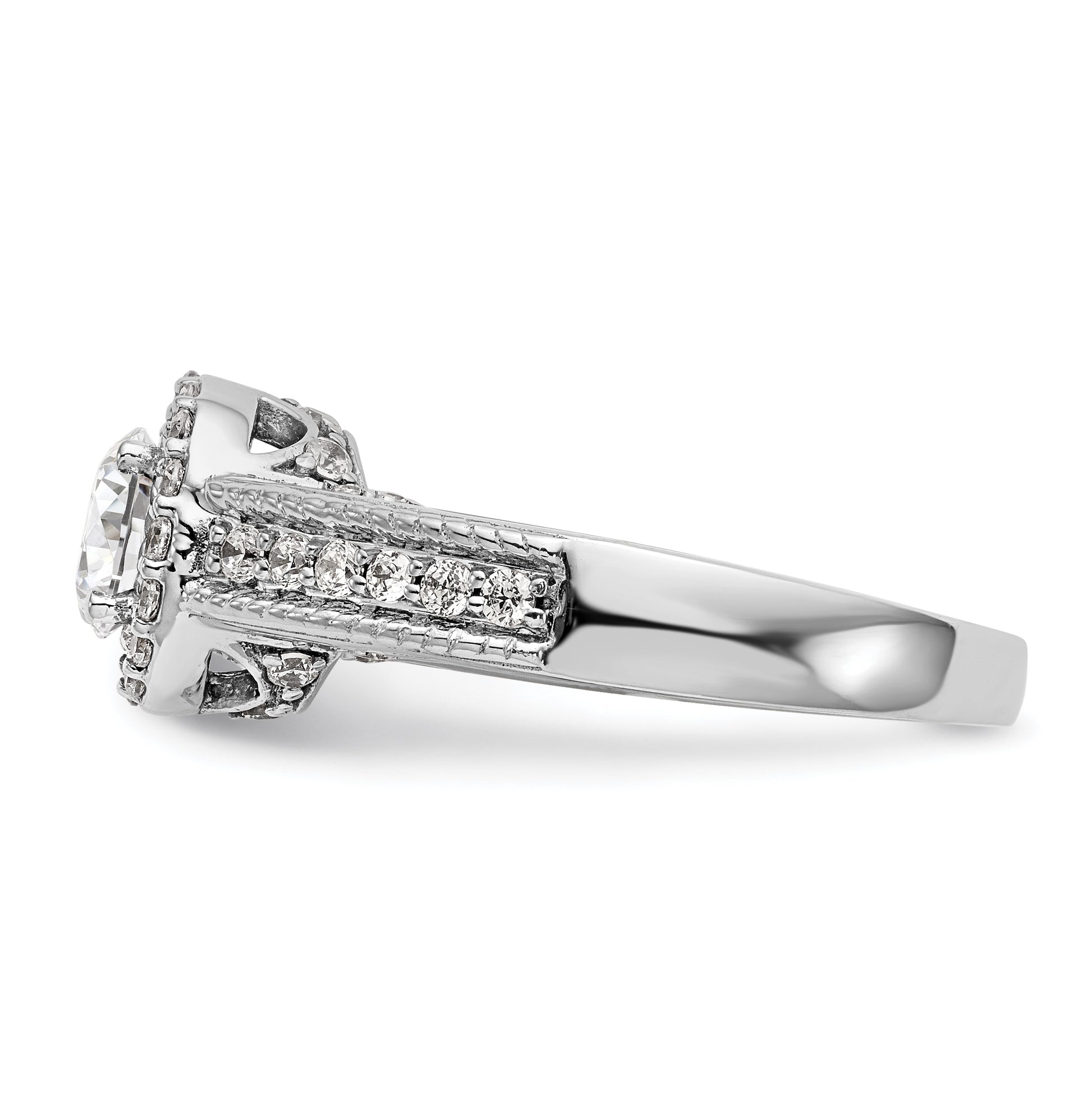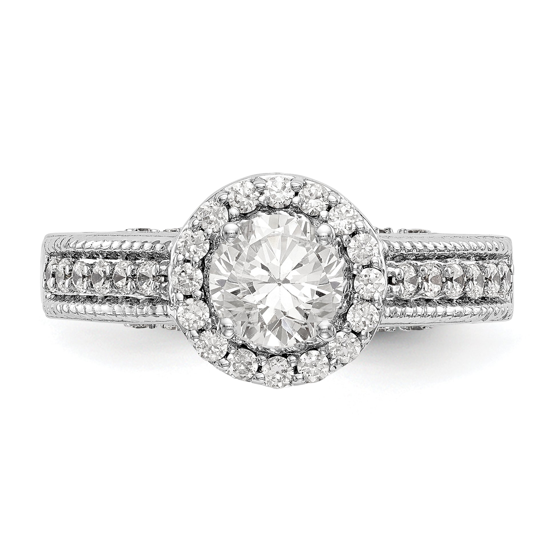 14K White Gold Halo Plus (Holds 3/4 carat (5.8mm) Round Center) 1/2 carat Diamond Semi-Mount Engagement Ring, 3.9 to 1.7 mm (tapered)