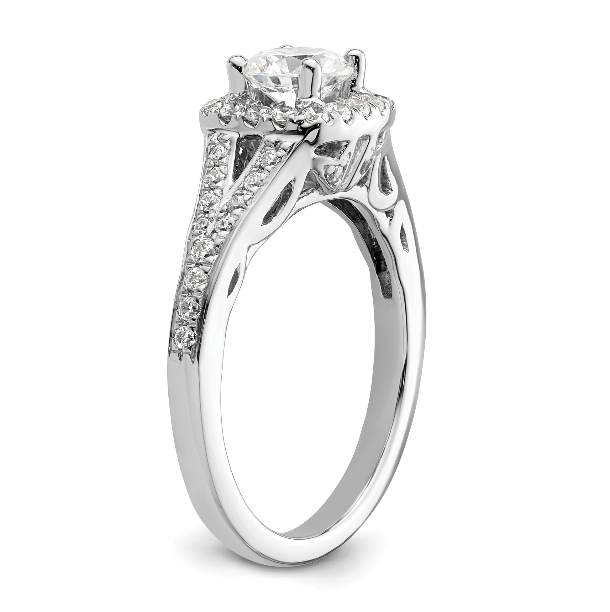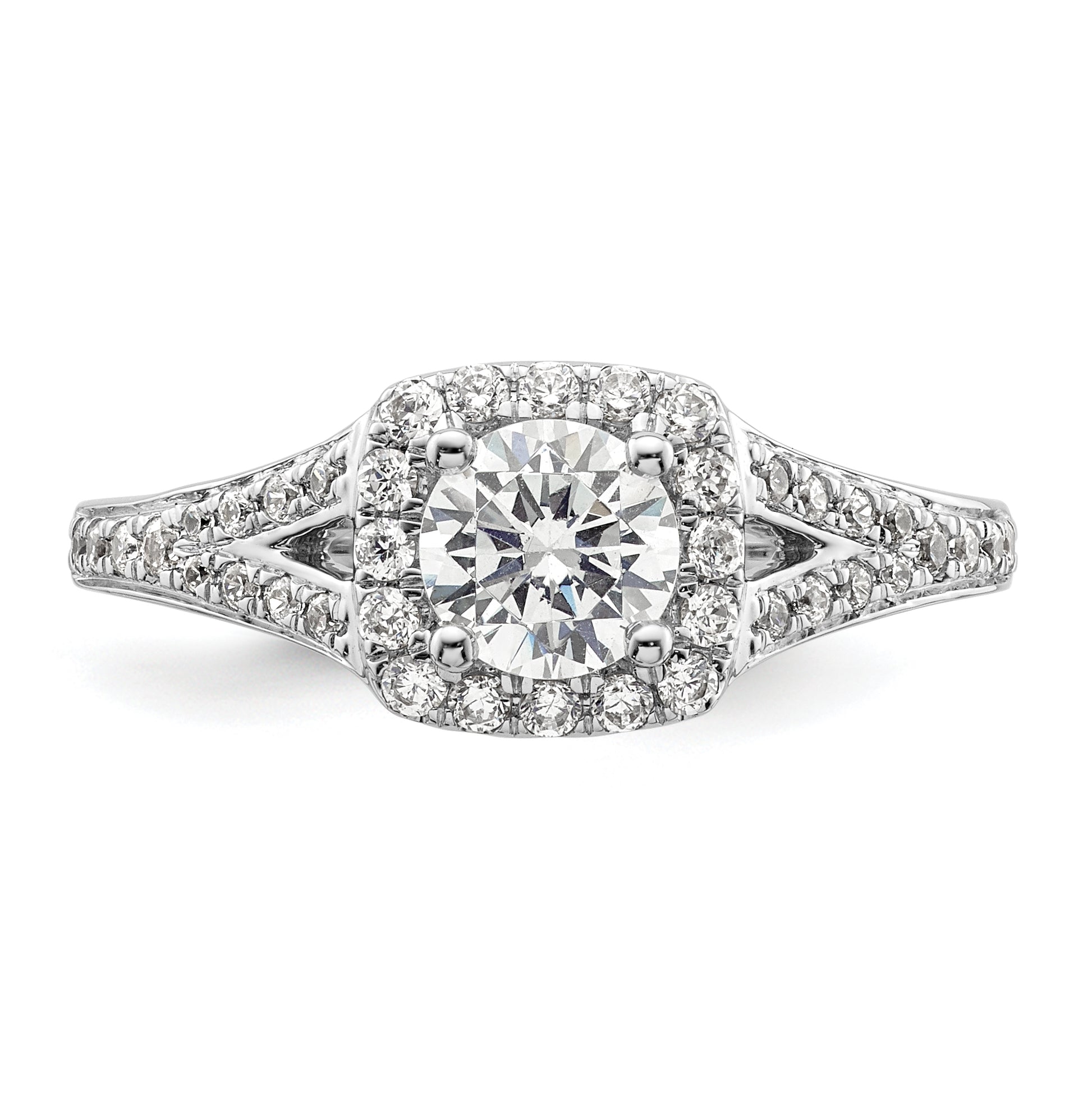 14k White Gold Halo Plus (Holds 3/4 carat (5.8mm) Round Center) 3/8 carat Diamond Semi-Mount Engagement Ring, 2.2 to 2.1 mm (tapered)
