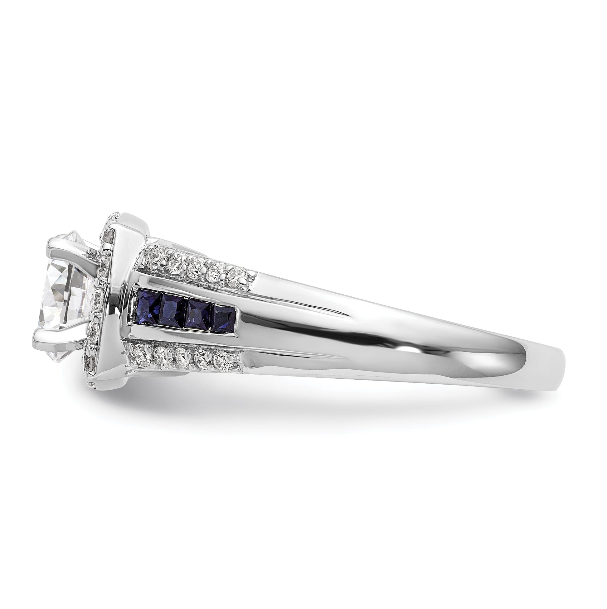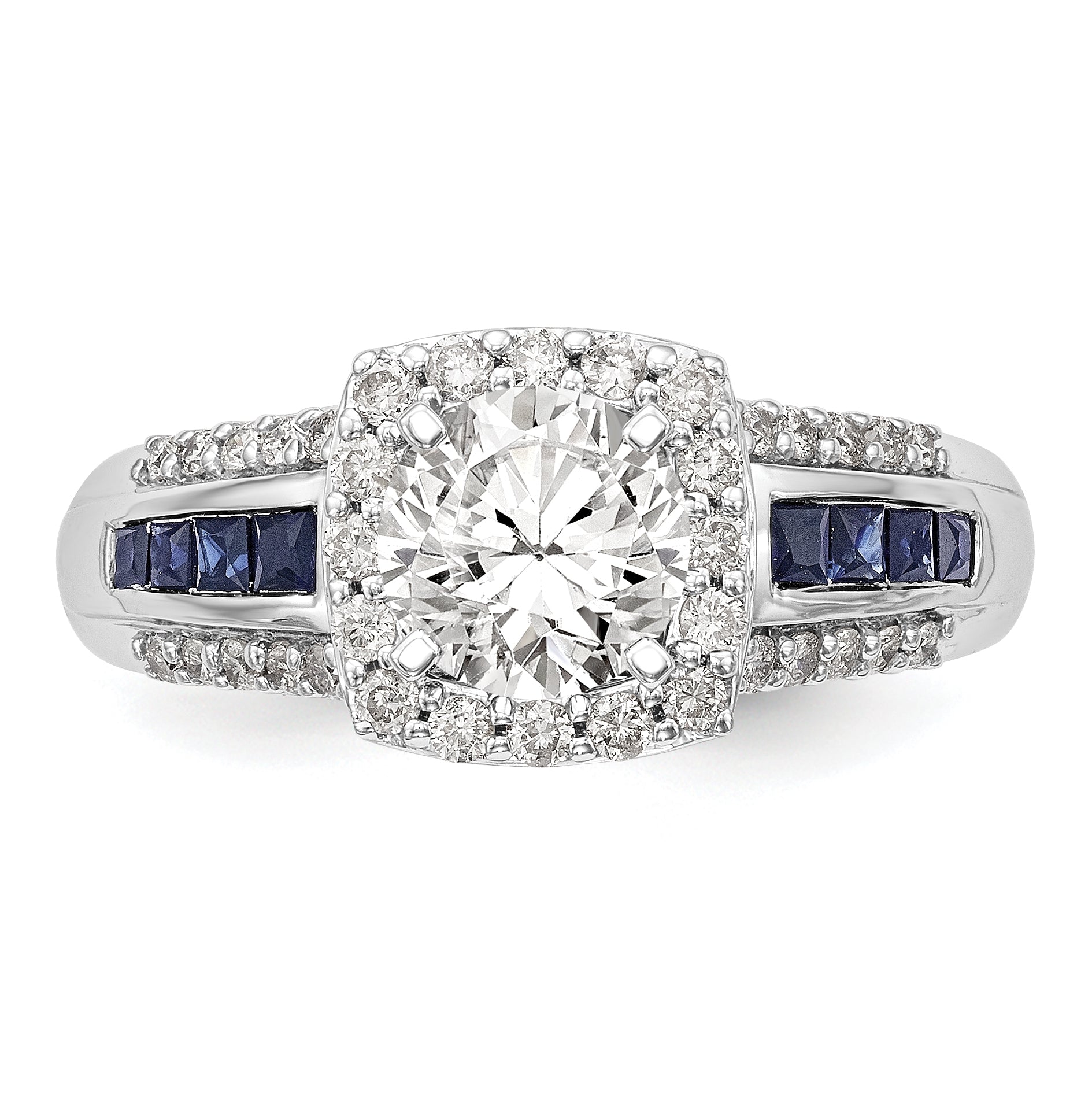 14k White Gold Halo Plus Peg Set 1/3 carat Diamond and Sapphire Semi-Mount Engagement Ring