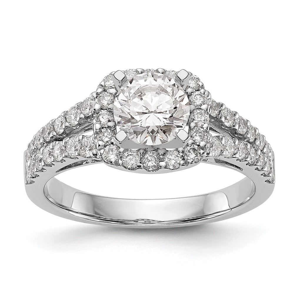 14K White Gold Halo Plus Peg Set 3/4 carat Diamond Semi-Mount Engagement Ring