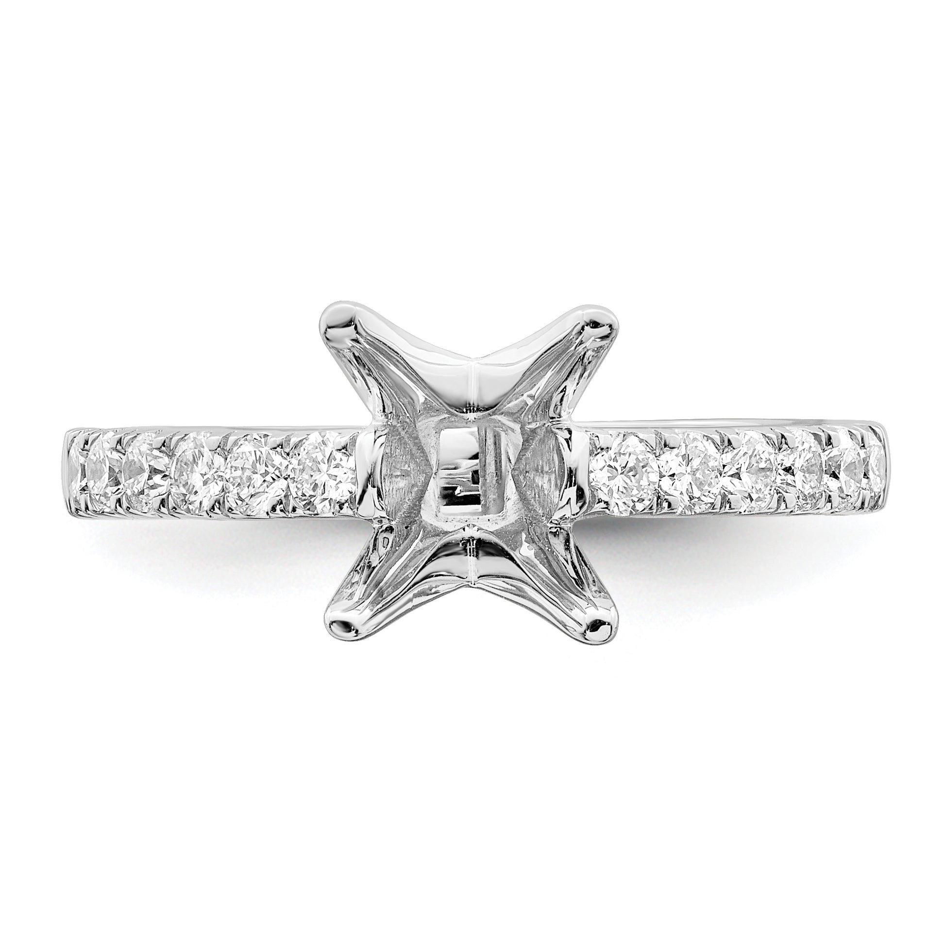 14K White Gold (Holds 1.5 carat (6.4mm) Princess Center) 3/8 carat Diamond Semi-Mount Engagement Ring