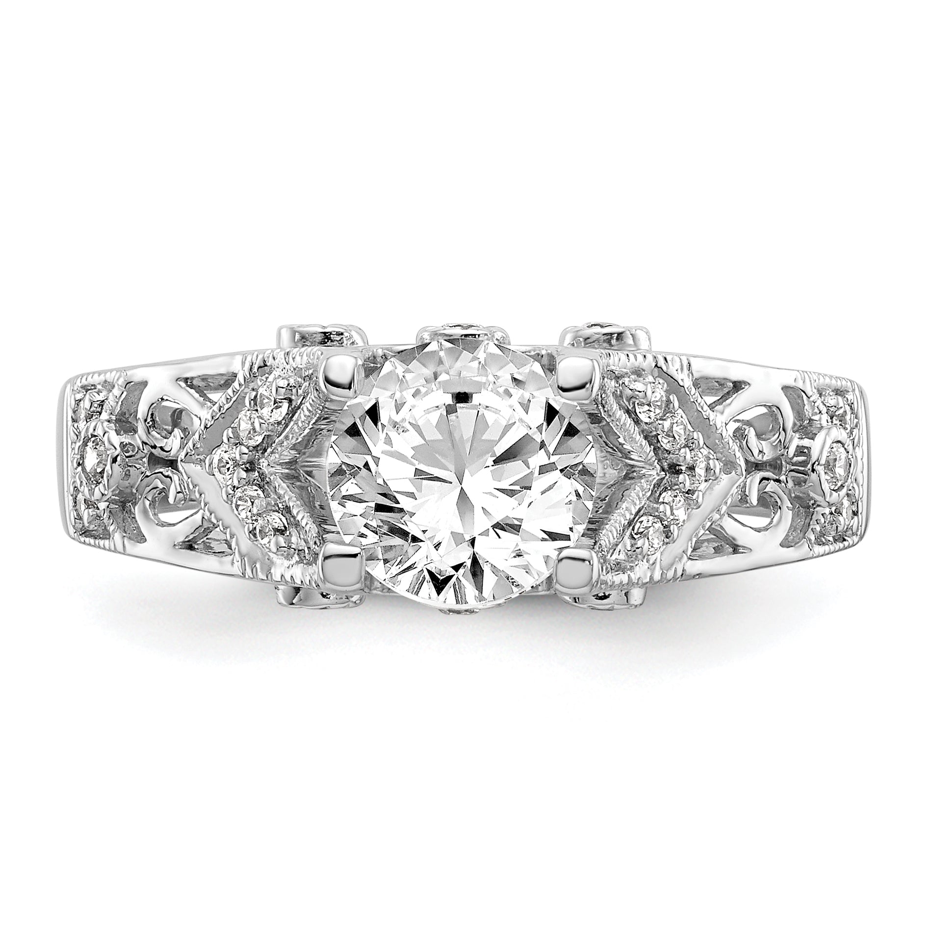 14K White Gold (Holds 1 carat (6.5mm) Round Center) 1/8 carat Diamond Semi-Mount Engagement Ring