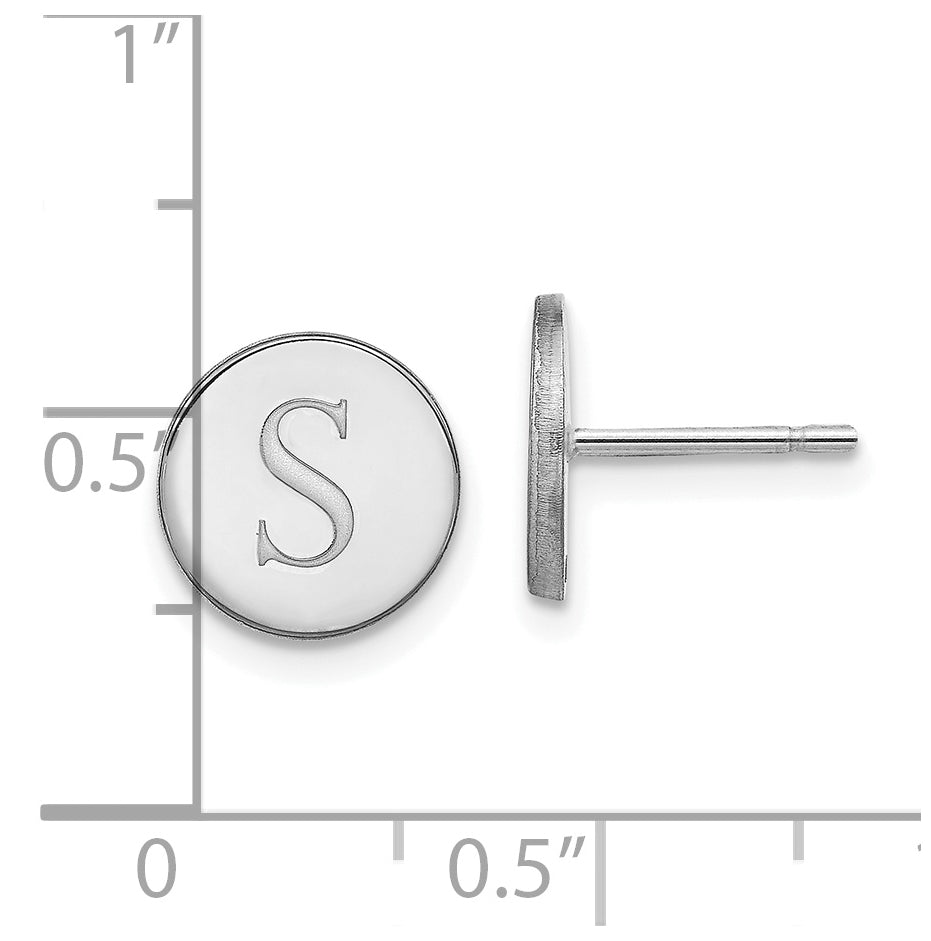 14K White Gold Initial Circle Post Earrings