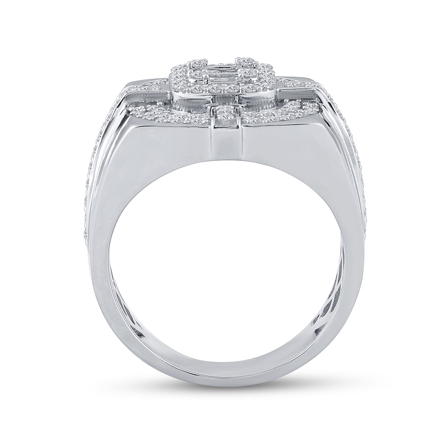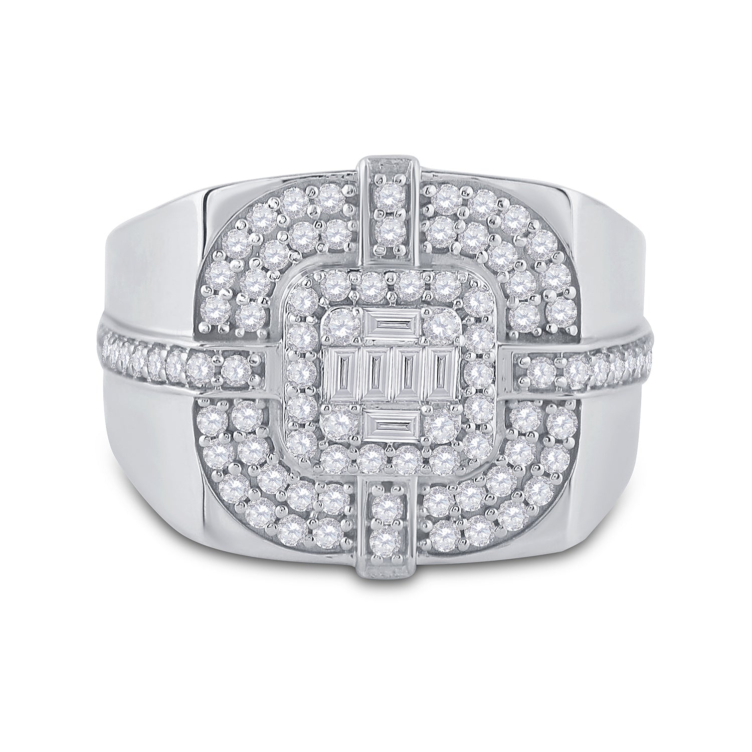14K White Gold Mens Baguette Diamond Square Ring 1 Cttw, Mens Size: 7-13