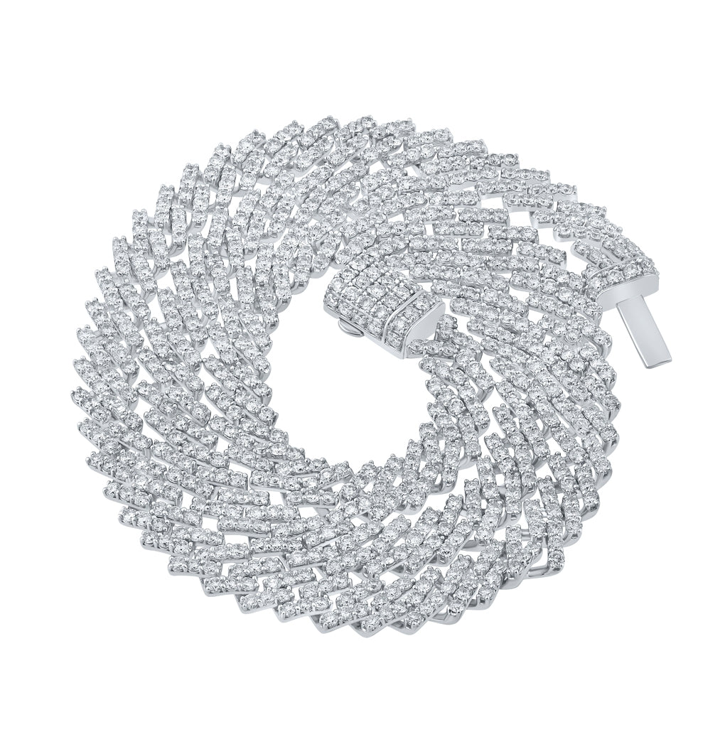 14K White Gold Mens Round Diamond 22-inch Cuban Link Chain Necklace 17-3/4 Cttw, Length: 20 In, Width: 0.33 In