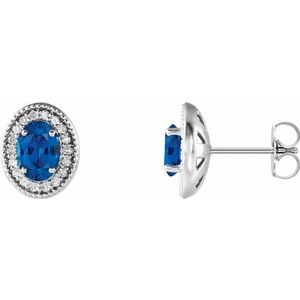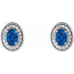 14K White Gold Oval 6 X 4 Mm Natural Blue Sapphire And 1/5 Ctw Natural Diamond Earrings