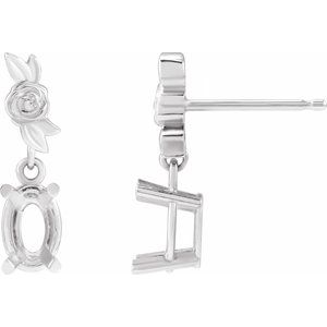 14K White Gold Oval 8 X 6 Mm Floral Dangle Earring Mounting