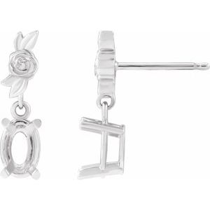 14K White Gold Oval 8 X 6 Mm Floral Dangle Earring Mounting
