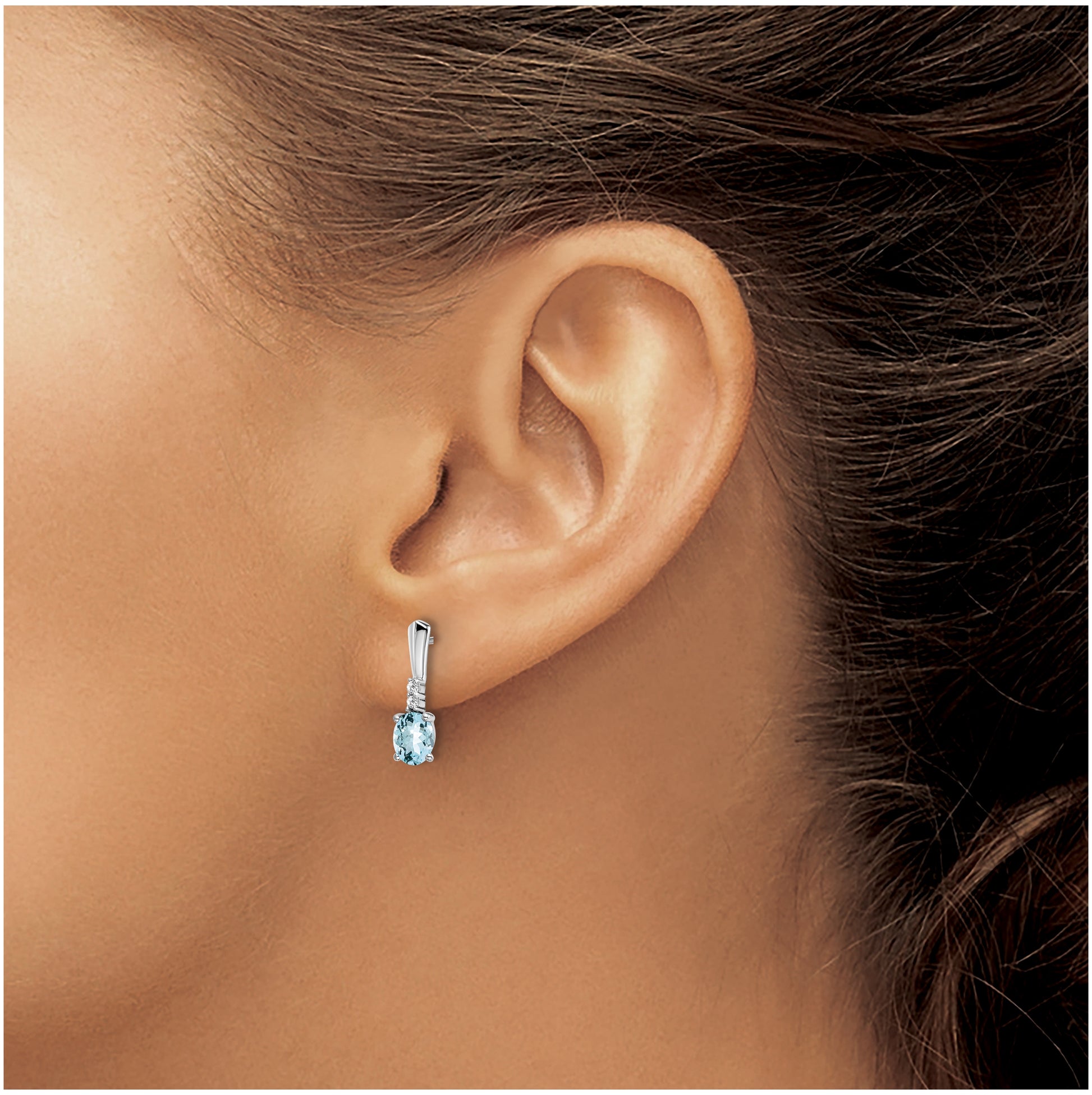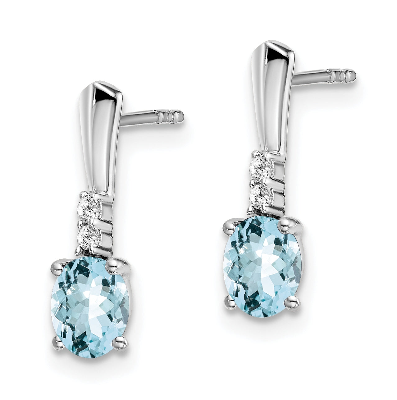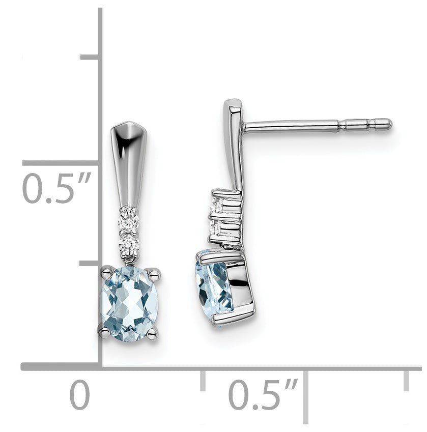 14k White Gold Oval Aquamarine and Diamond Dangle Earrings