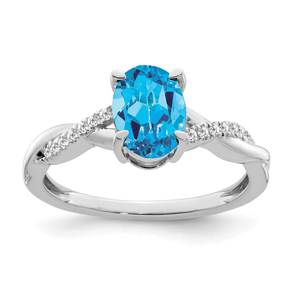 14k White Gold Oval Blue Topaz and Diamond Ring, Size 7