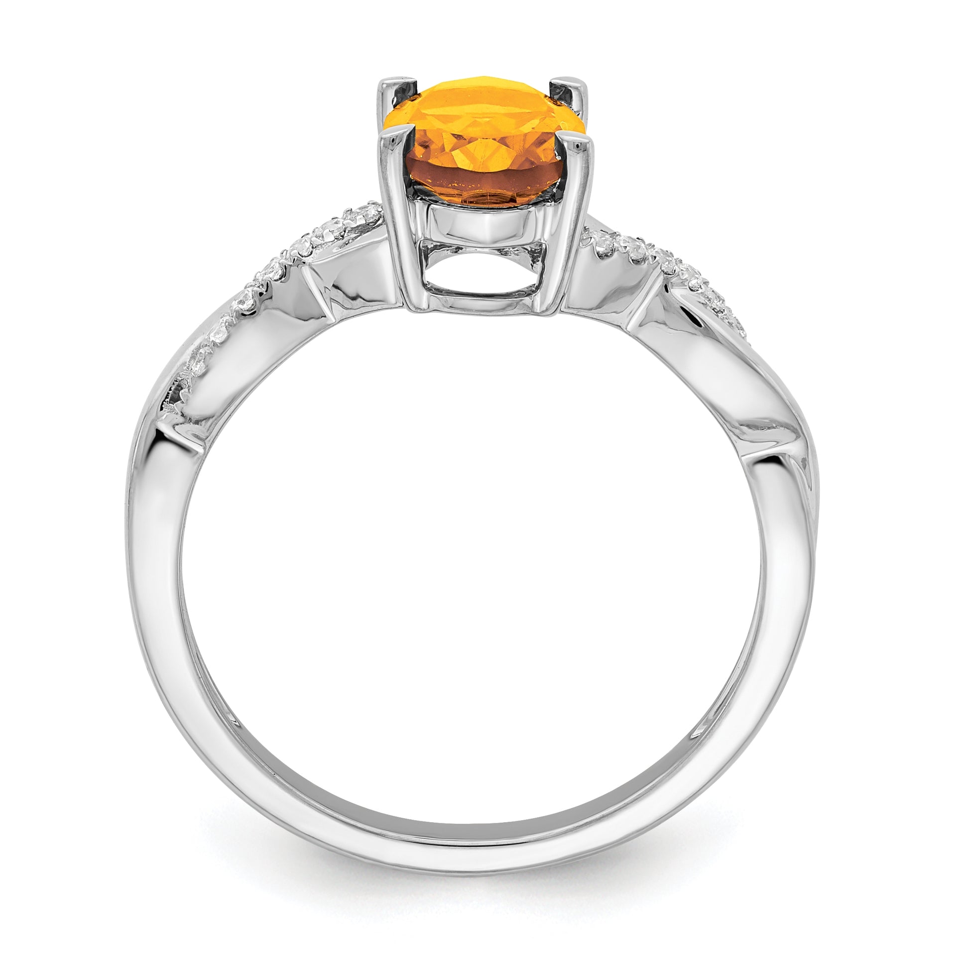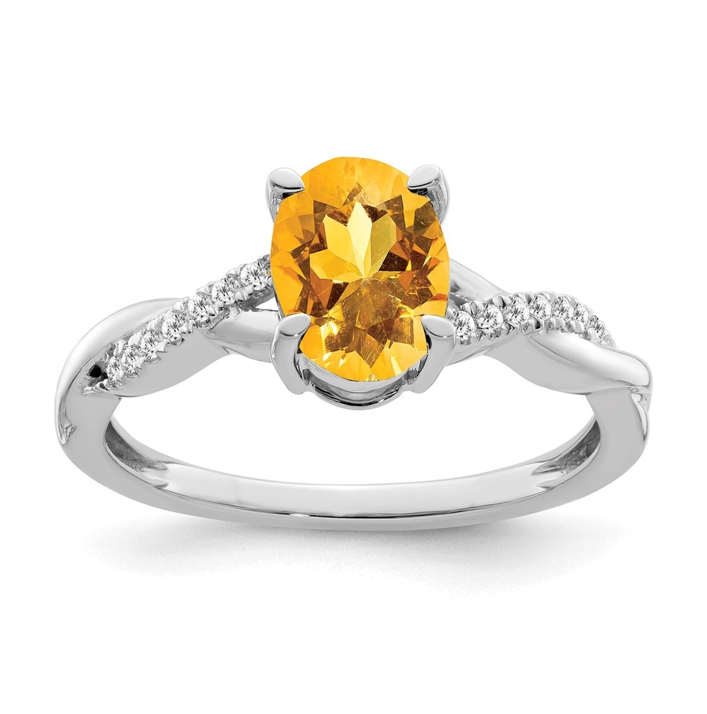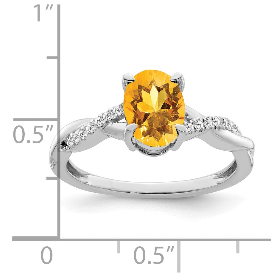 14k White Gold Oval Citrine and Diamond Ring, Size 7