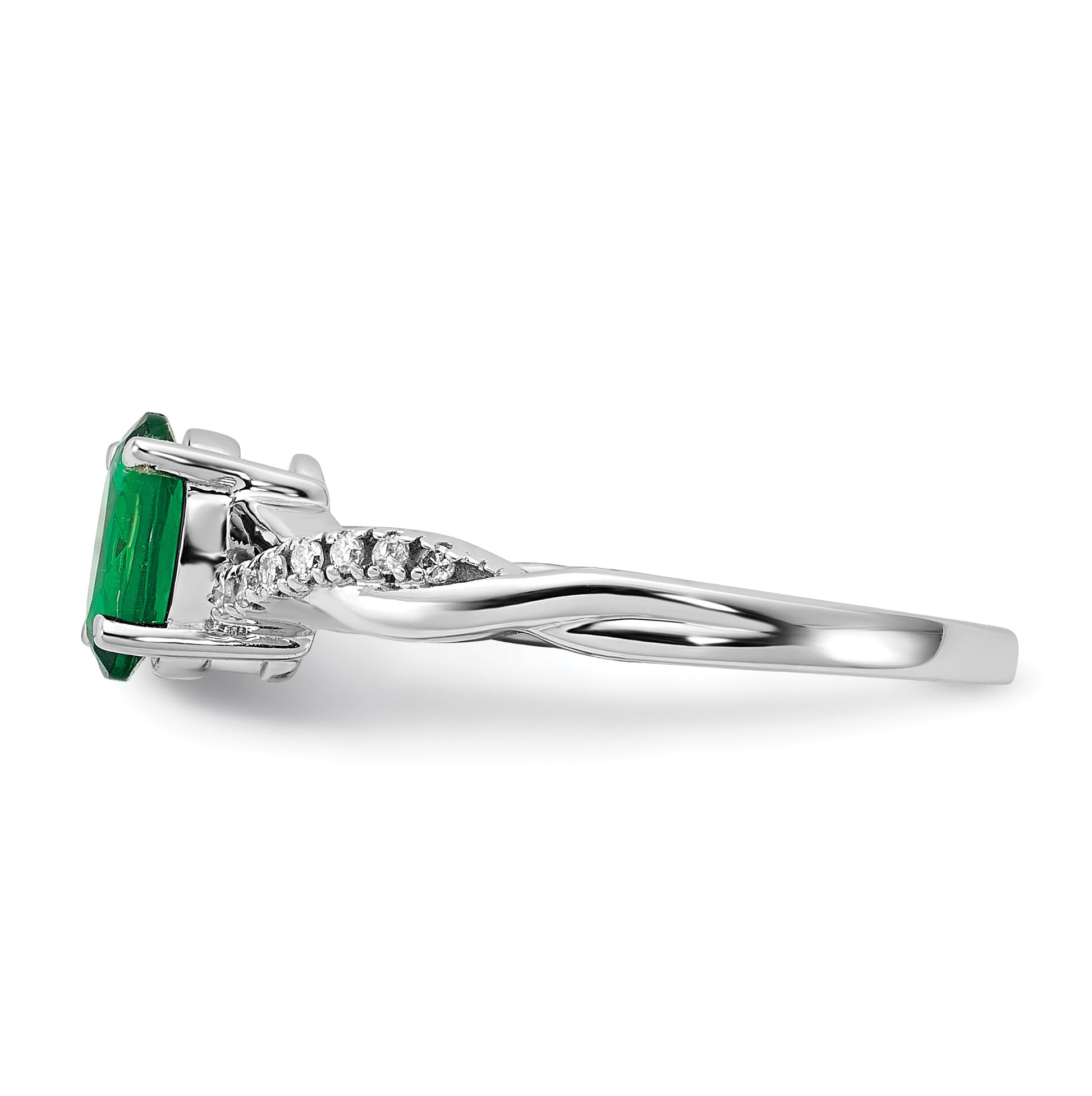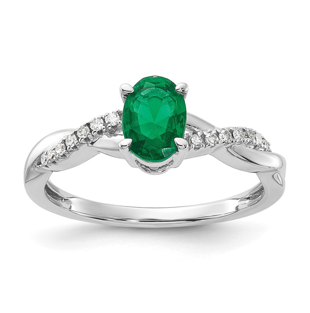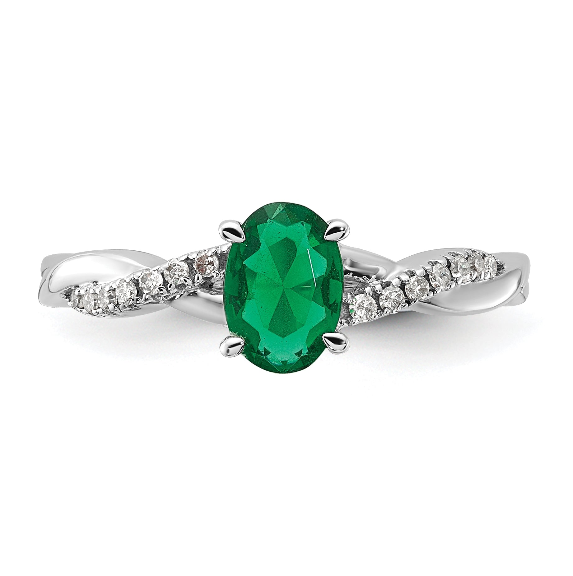 14K White Gold Oval Created Emerald and Diamond Ring, Size 7