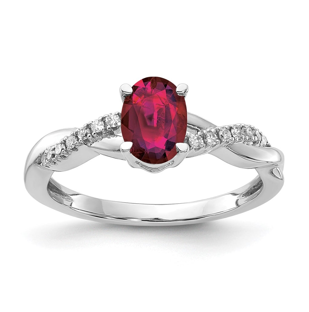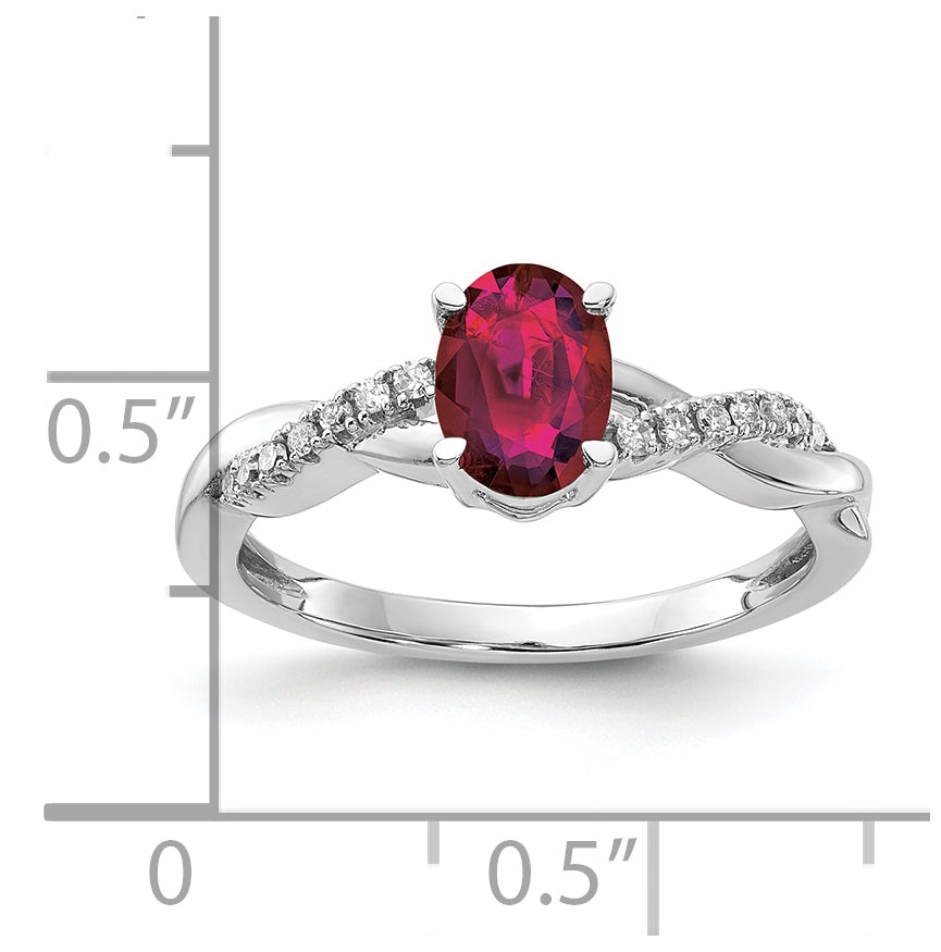 14K White Gold Oval Created Ruby and Diamond Ring, Size 7