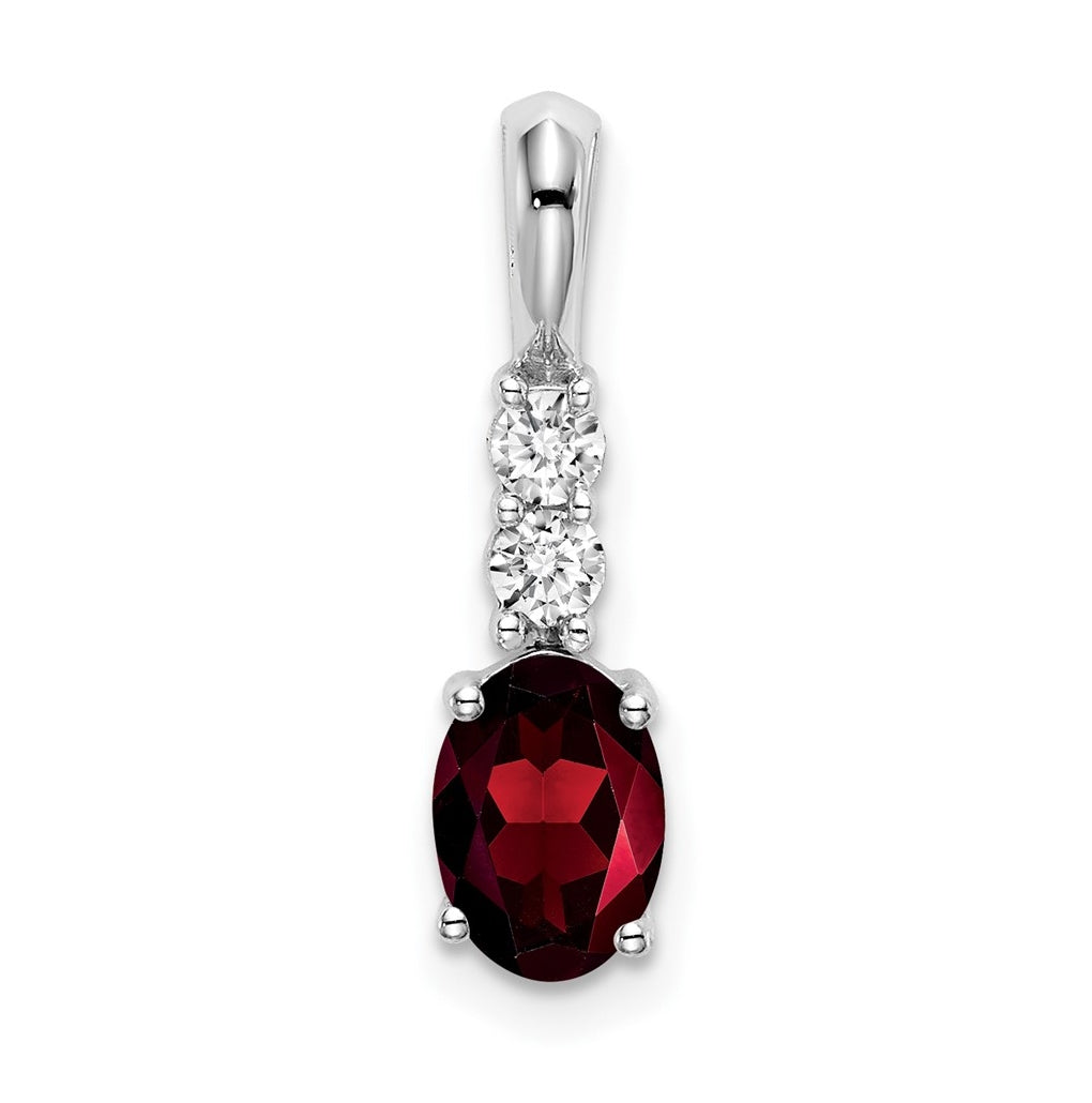 14k White Gold Oval Garnet/Diamond Pendant